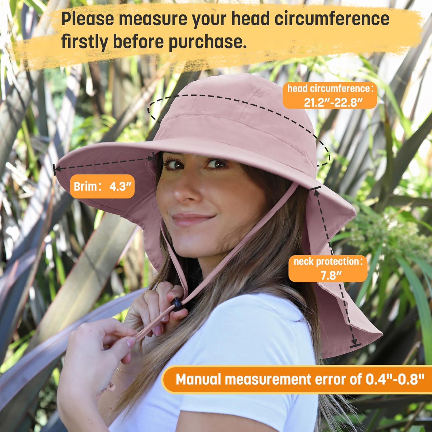 SMALL HEAD FIT (22.8” Circumference): Designed for petite women and teens, this adjustable sun hat securely fits smaller heads while standard hats slip off. 4.3” wide brim + 7.8” neck flap block 99% UV rays.