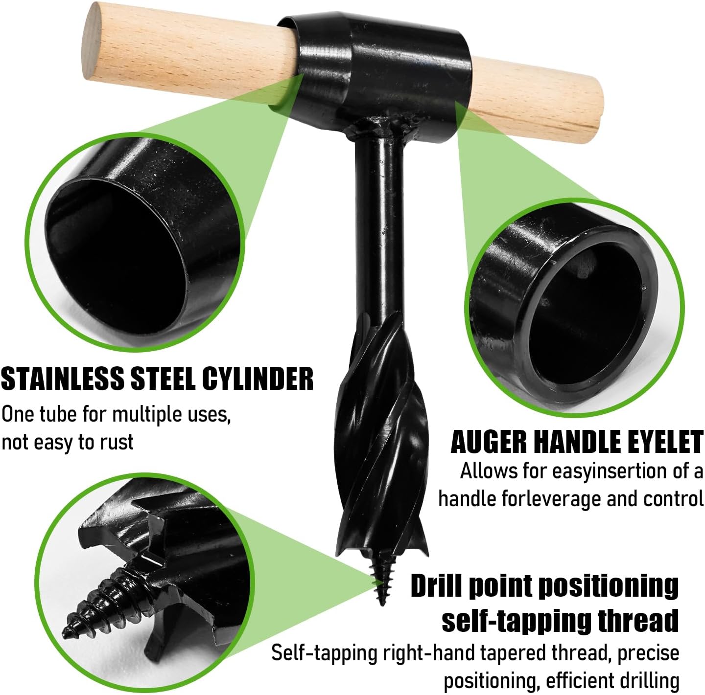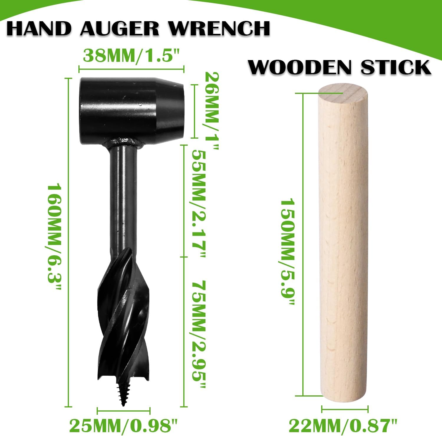 Scotch Eye Auger Drill: Made of high-quality steel and 6.3’’ long; When in use, pass the wooden stick through the scotch eye to obtain leverage, so that you can easily rotate the spiral drill and obtain a hole with a diameter of 0.98’’