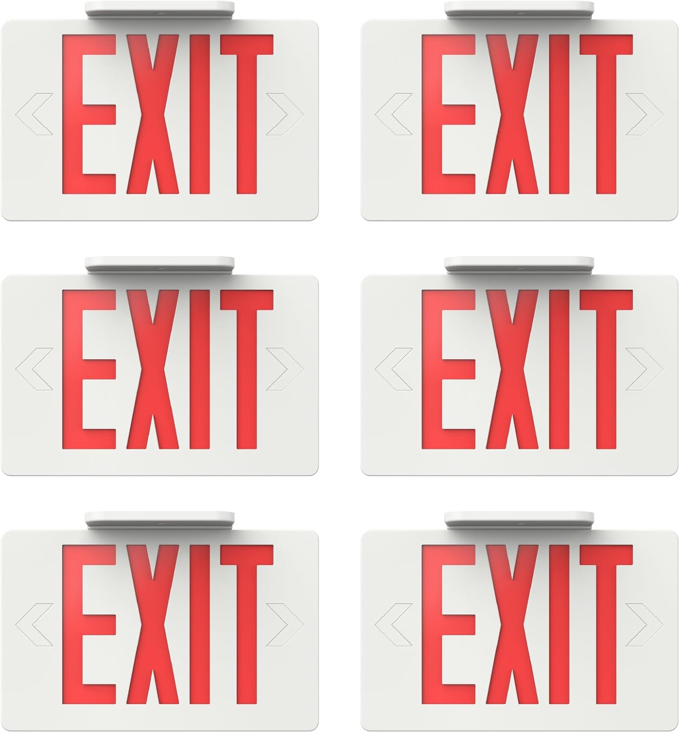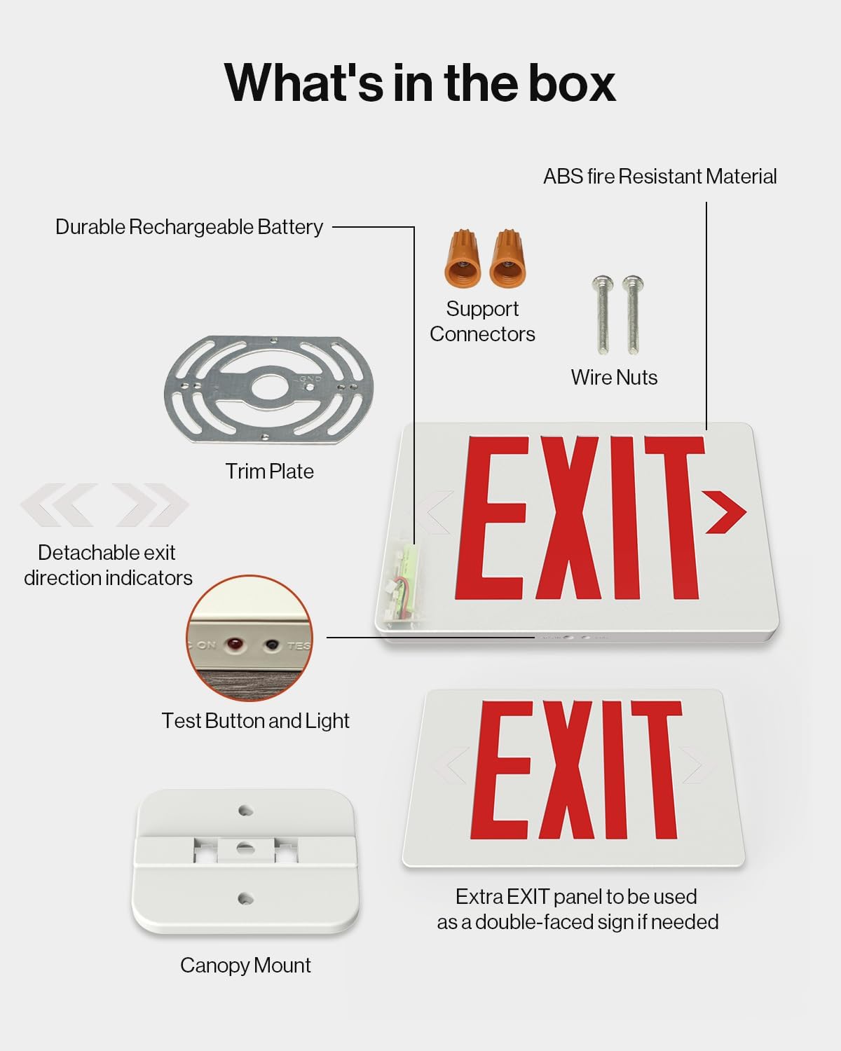 ✅ SAFETY FIRST – US standard red 6″ high letters with 3/4″ stroke are visible from up to 100 feet away for maximum visibility (knockouts for directional arrows included). In case of a power outage, the backup battery automatically illuminates (90 minutes) the fixture and lights the way to safety.