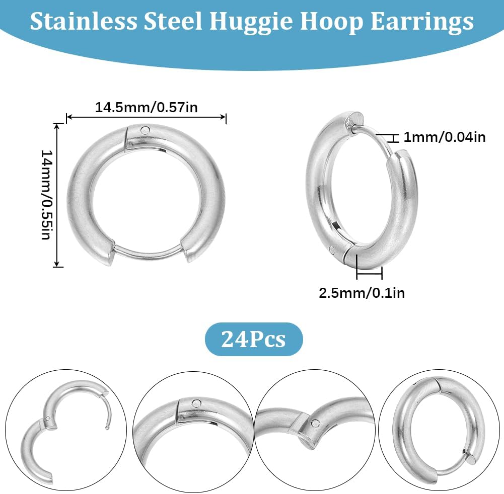 [1 BOX 24PCS ROUND EARRING FINDINGS]: You will receive 24pcs stainless steel huggie hoops leverbacks, 12 pairs totally. A plastic box is included to help you store and protect your earring backs & findings.
