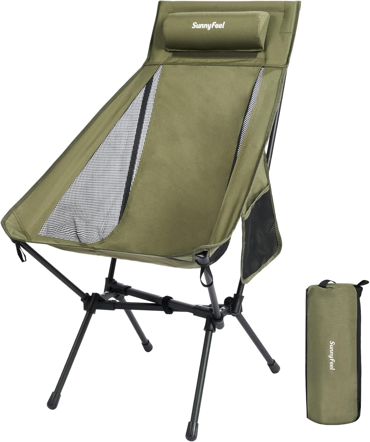 [Enhanced Comfort] The high back camping chair design provides comprehensive spinal support, and the headrest can be customized with a DIY pillow (attached with Velcro) for added comfort.