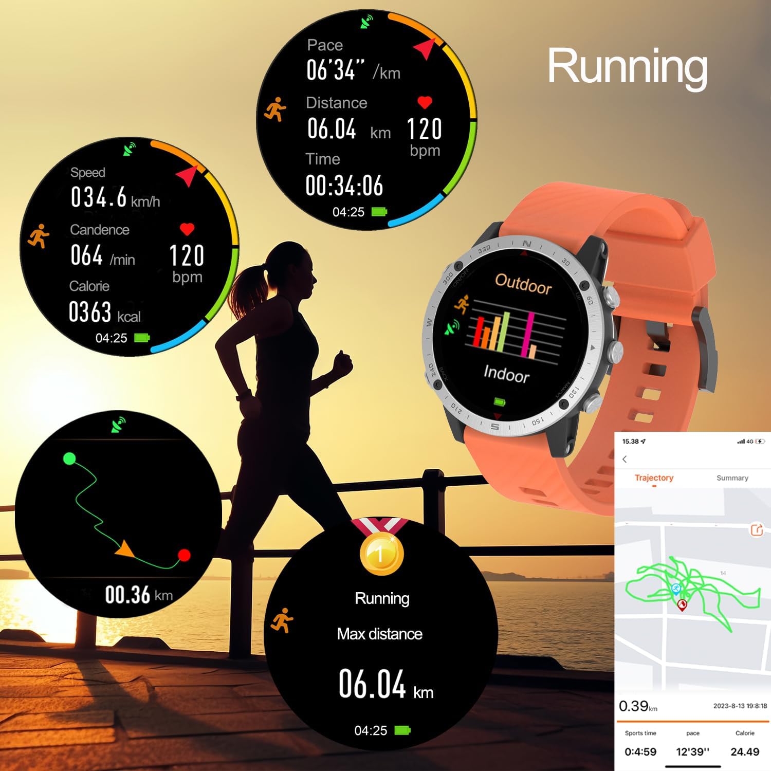 Sports data: Pace, Calorie, dynamic heart rate, sports time, steps, speed, distance, GPS sports route, digital compass, weather forecast, blood oxygen, altitude, air pressure, the best records, historical data storage etc.