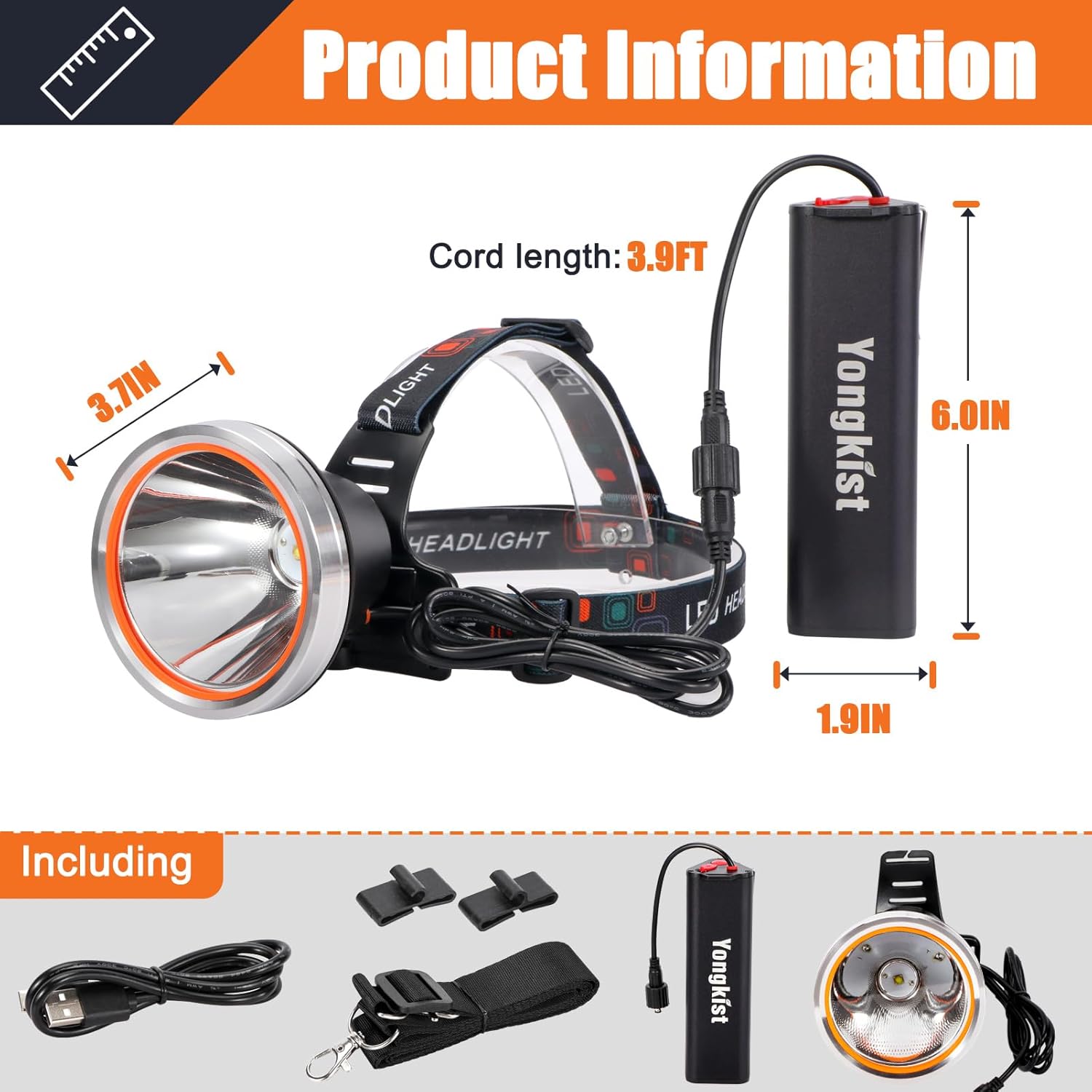 ✔️ 【Super Bright & Long Range】Equipped with Yongkist high-lumen LED bulbs, this headlamp delivers ultra-bright illumination with a lifespan of up to 100,000 hours. Long beam distance up to 2600 feet (800 meters) ensures clear vision even in total darkness.