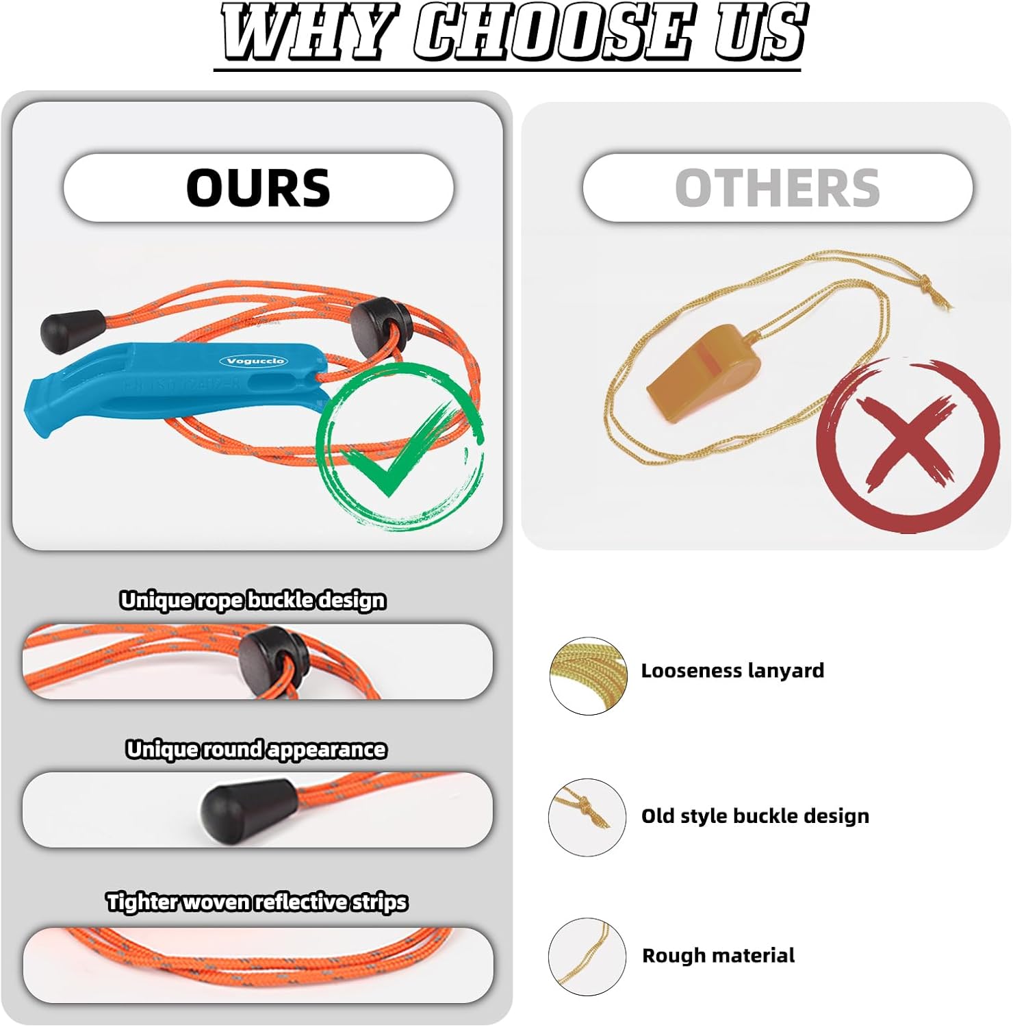 【Reflective Lanyard & Clip – Ideal Whistle for Life Jacket and Outdoor Use】 Each emergency whistle includes an 18-inch adjustable lanyard with reflective stitching for low-light visibility and a sturdy clip for secure attachment. It’s the perfect whistle for life jacket, backpack, or belt—keeping your loud emergency whistle accessible while leaving hands free.