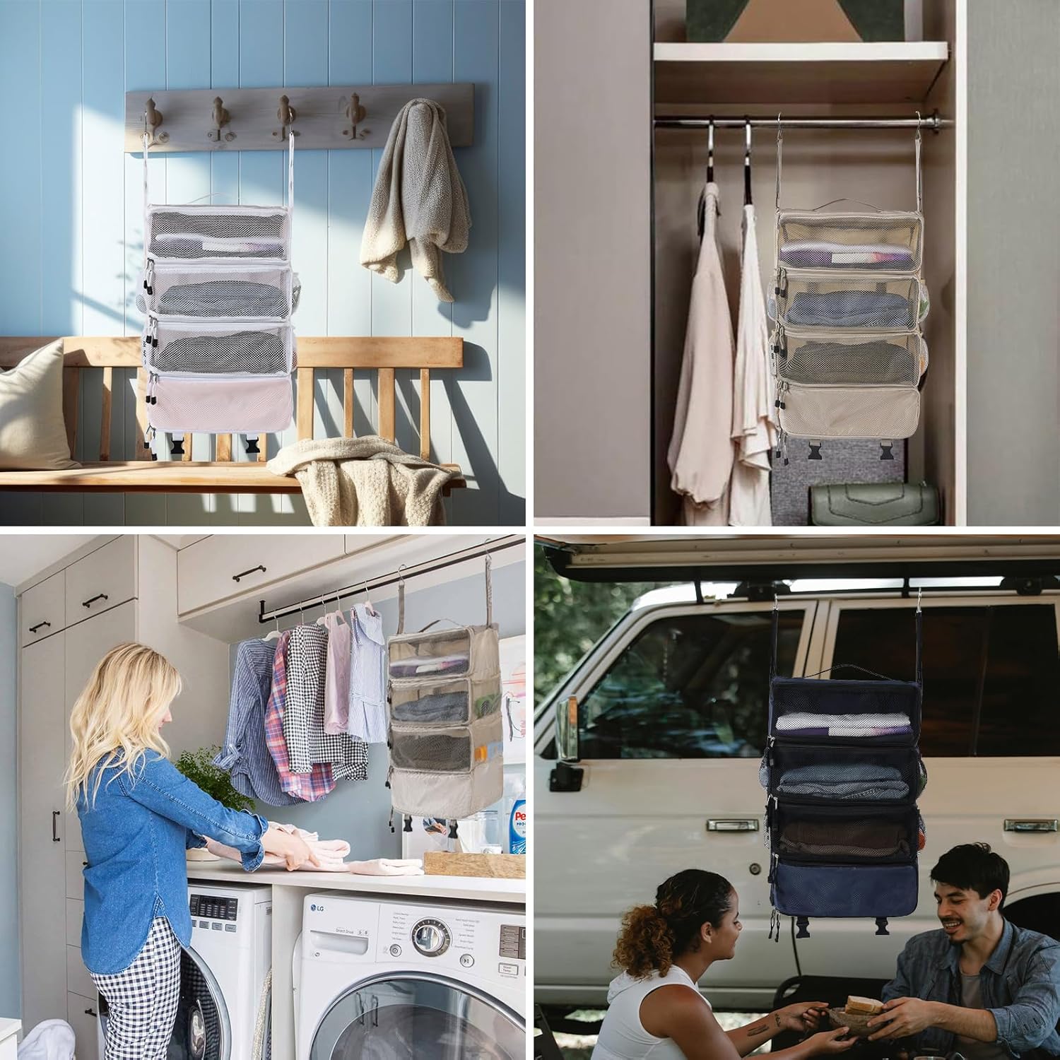 Time and Space-Saver: The hanging suitcase organizer is a great helper for home storage, whether they are placed in the closet, behind the door, or even kitchen, or bathroom to meet your various storage demands. The hanging travel organizer is also the perfect companion for your outdoor activities, travel, and business trips.