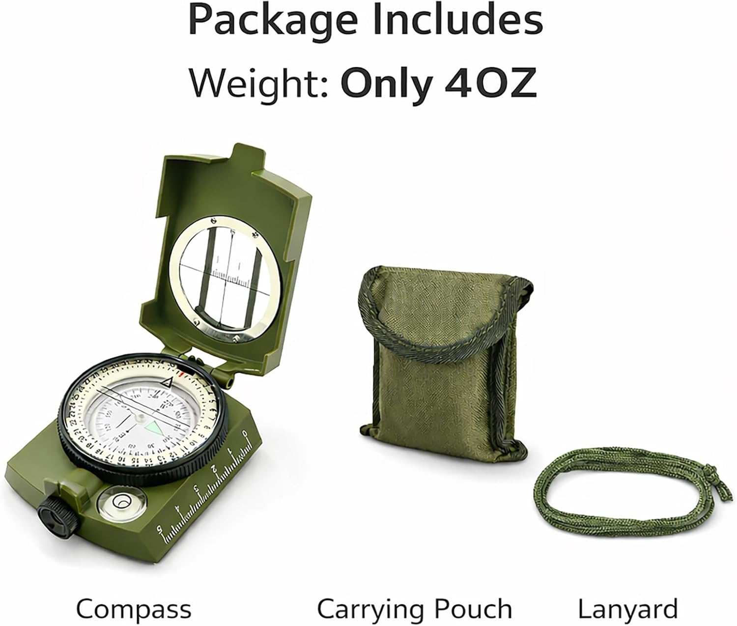 COMPLETE NAVIGATION SET INCLUDED: Package includes foldable lensatic compass, carrying pouch, and lanyard — ready for hiking, camping, backpacking, or emergency kits right out of the box.