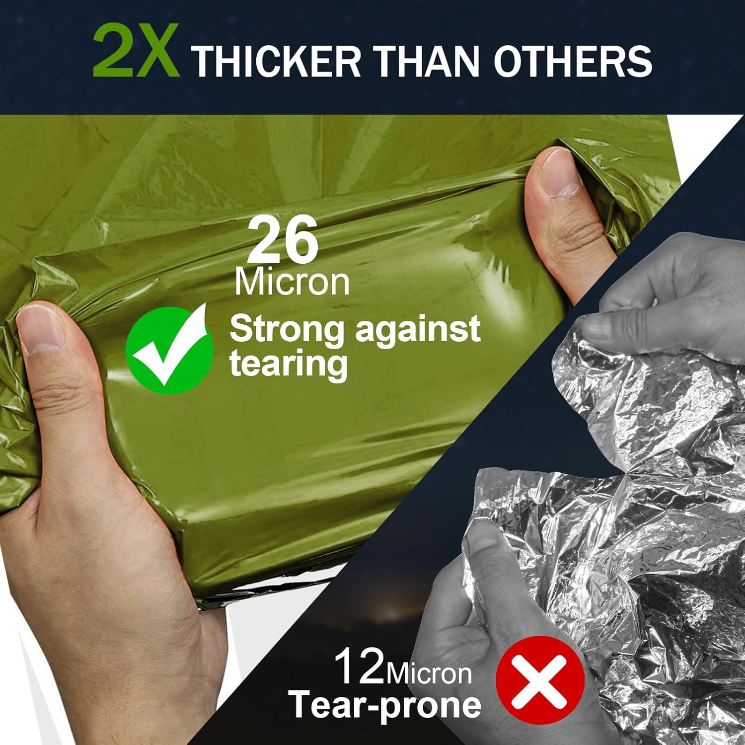 🔥【Versatile & Lightweight】: These camping emergency blankets are essential whether you’re camping in the wilderness, embarking on an exploration journey, or in need of emergency protection in your vehicle. Their versatile design makes them suitable for various outdoor activities, providing reliable insulation and shelter when you need it most. They are designed to be compact and lightweight, easy to carry in a backpack or emergency kit. When folded, they are palm-sized and weigh only 2 ounces per blanket, maximizing functionality when needed.