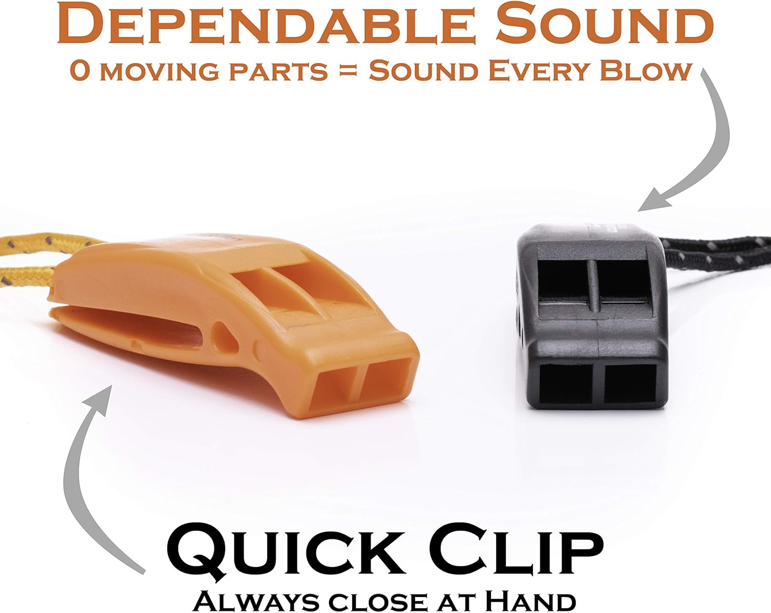 ✔ ALL our Whistles have a CLIP & LANYARD — They have a number of attachment options, can easily attach to a backpack, hiking gear, life jacket, kayak PFD, paddle board; meanwhile great for attaching to your belt or shoulder straps.