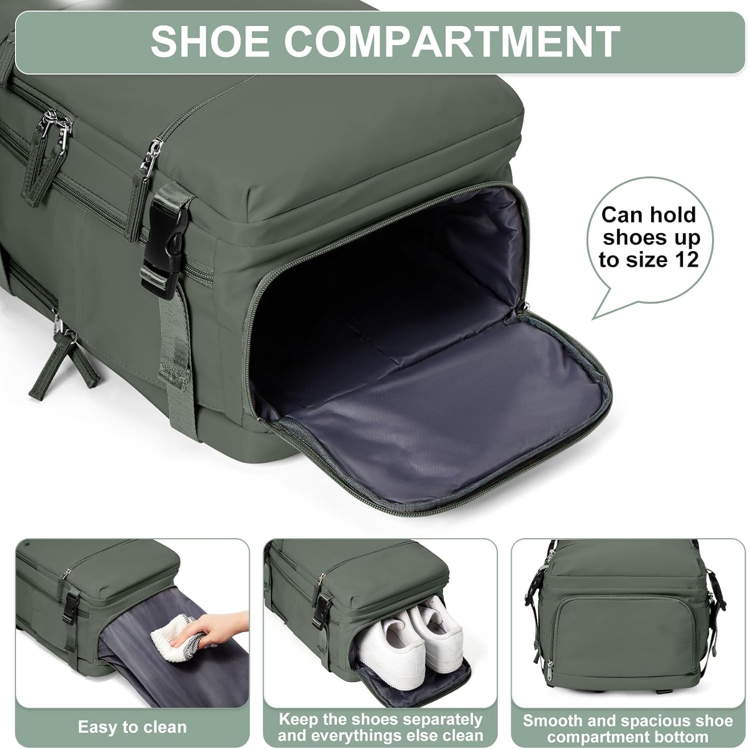 INDEPENDENT SHOE COMPARTMENT AND WET POCKET: The shoe compartment can hold a pair of slippers or sneakers, allowing you to switch freely between different travel, business trip and outdoor sports status. The wet pocket is designed for storing wet towels, wet clothes, toiletries, etc., making your stay in the hotel or apartment more convenient.
