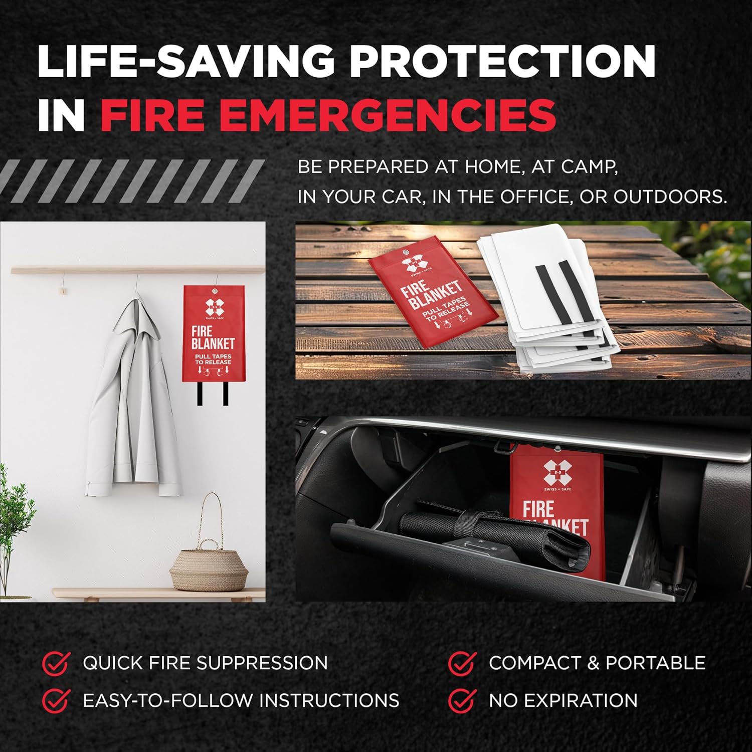 Instant Fire Suppression for Any Emergency – Easily deploy the Swiss Safe Emergency Fire Blanket for home and kitchen by pulling the release tabs. Designed to instantly smother flames on objects, people, and pets by cutting off oxygen, providing quick and life-saving protection during fire emergencies.