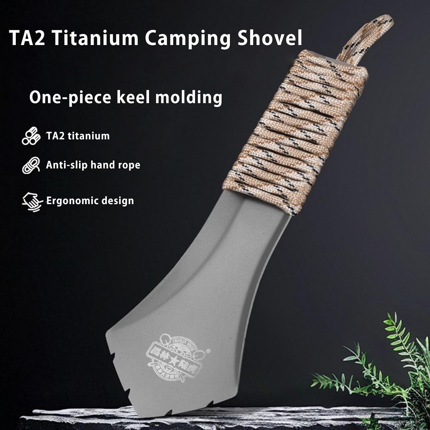Durable This titanium camping shovel is made from a one-piece TA2 titanium alloy, offering exceptional strength and durability.The shovel head is 1 mm thick.
