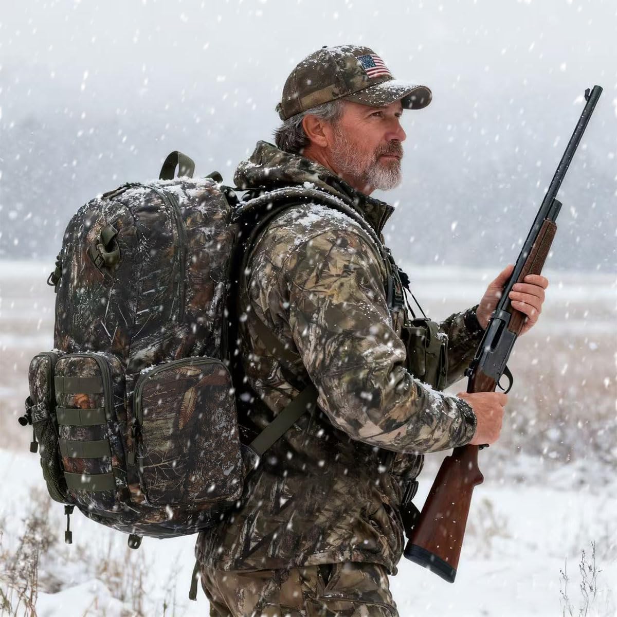 1050D high-density camo fabric undergoes 3000 steel wool abrasion tests, tougher than standard tactical bags—it stands up to thorns, rock scrapes, and sandstorms.Maximum visual concealment in woodland scenarios, reduces hunting detection probability by 65% and lets you “blend in” with natural surroundings during special reconnaissance, avoiding detection.