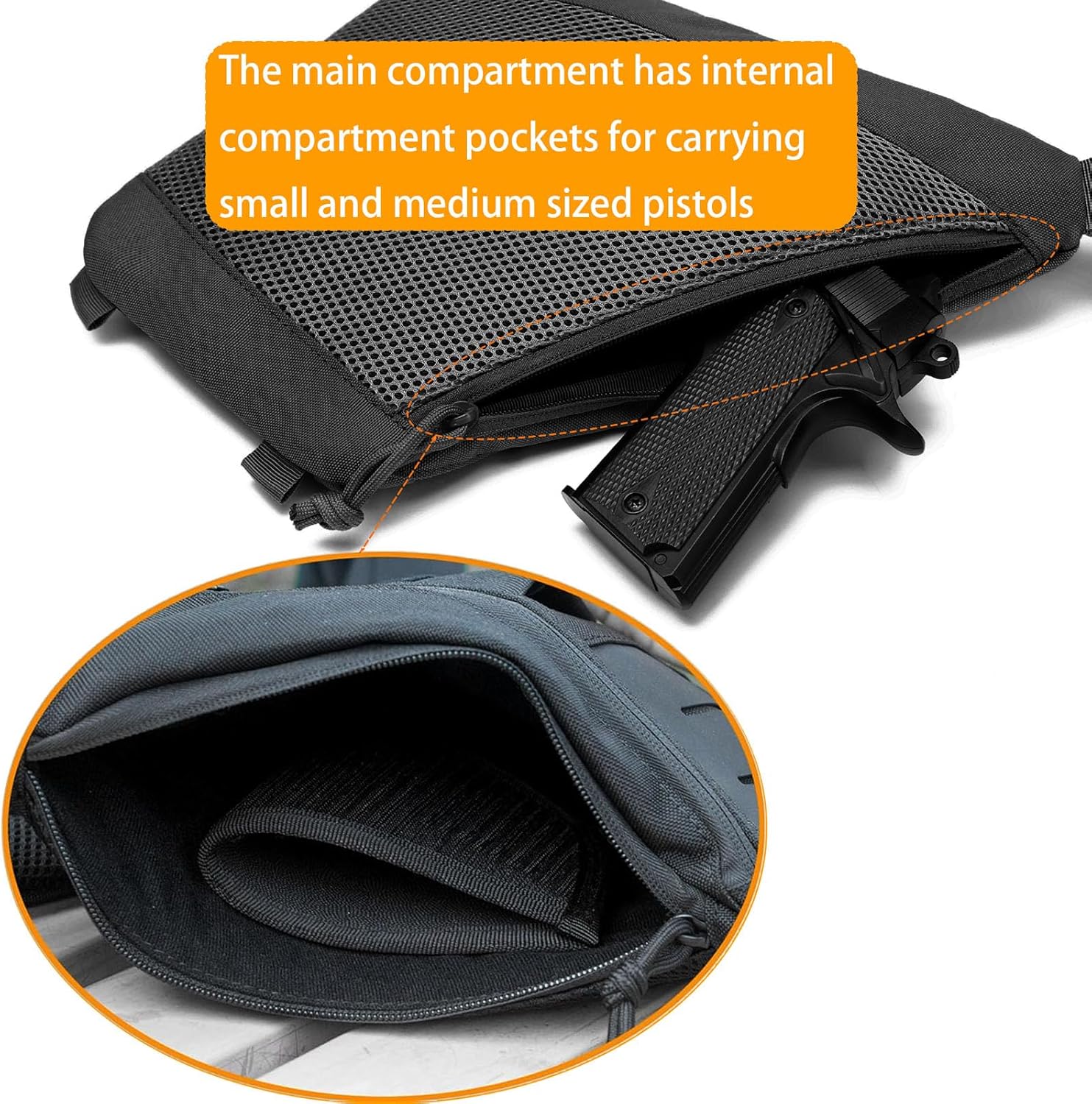 Organize your accessories in 3 compartments and carry one gun bag for handguns Perfect mens tactical sling bag for concealed carry of pistol