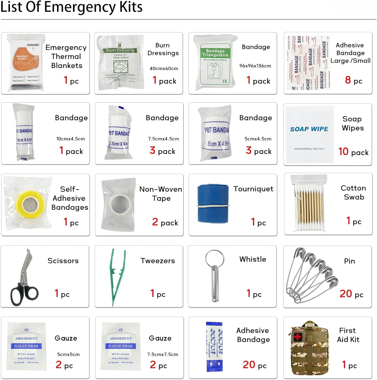 Emergency Essentials: The tactical first aid kit comes with basic medical supplies, suitable for daily emergency situations. Every family needs to prepare a medical kit.