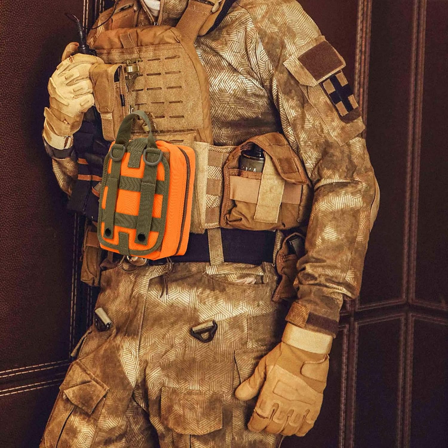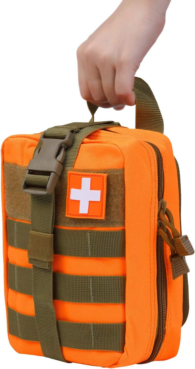 【LARGE CAPACITY】 – 8.3″*6.1″*4.4″ dimensions with multi pockets, Our molle medical pouch made from military grade polyester material for better tear & water resistant. Multi pockets and compartments allow you to store vital molle first aid supplies.