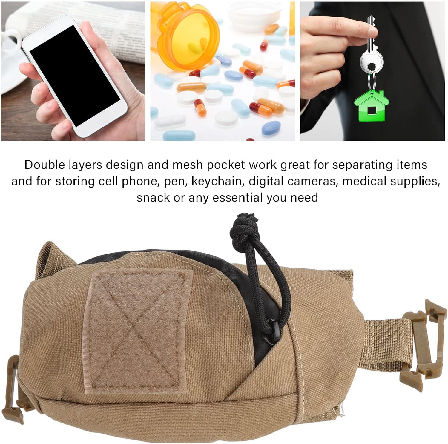 Asixxsix Backpack Strap Pouch, Smartphone Pocket Molle Bag, Tactical Gadget Backpack Shoulder Strap for Pen, Keychain, Digital Cameras, Medical Supplies Hikers Cycling (Khaki)