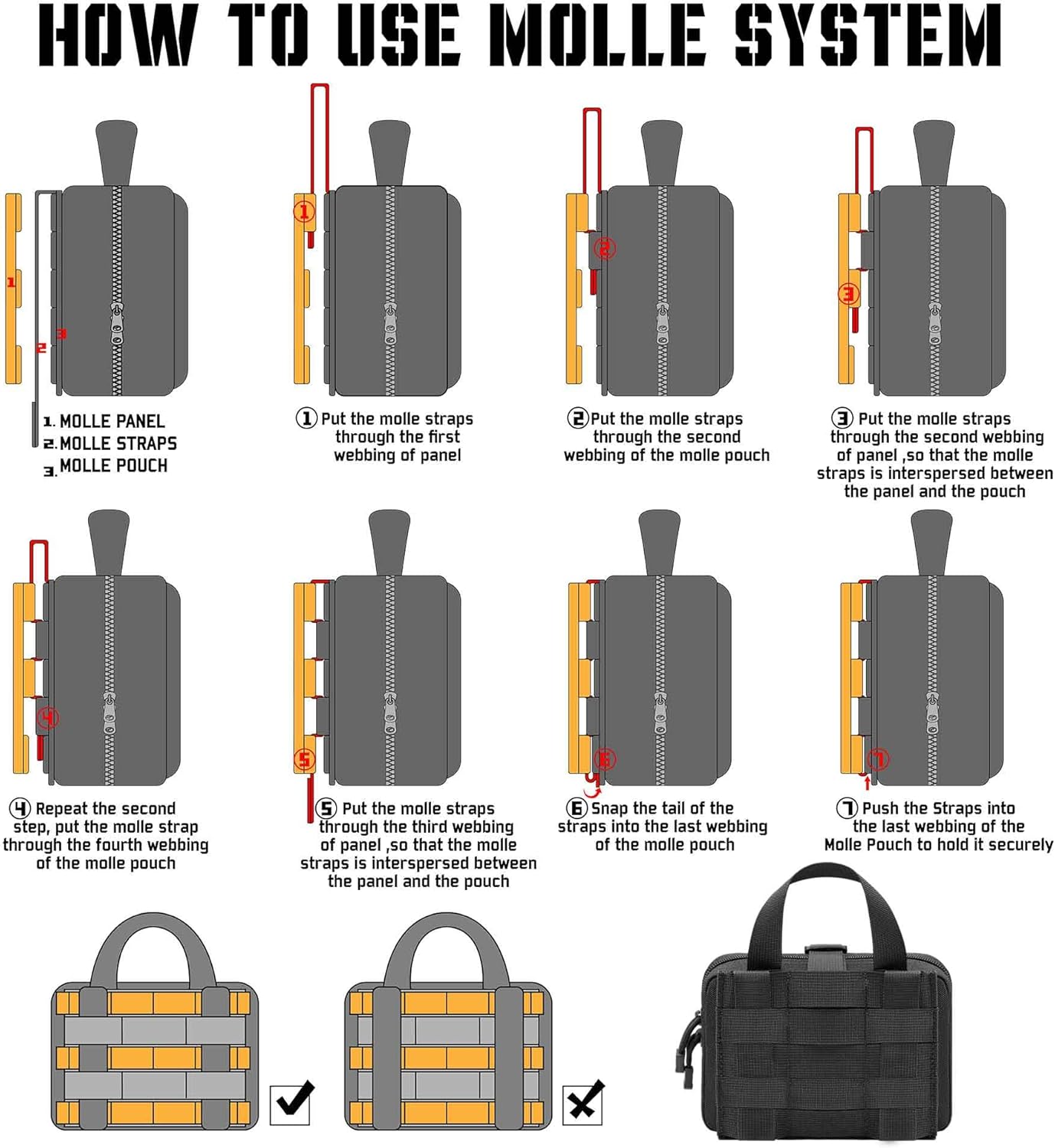 Securely Attach to Other Gear: Ifak pouch comes with MOLLE compatible PALS and tough nylon snap-straps to fully secure the medical pouch to belt, pack, chest rig, truck seat back and EDC backpack.