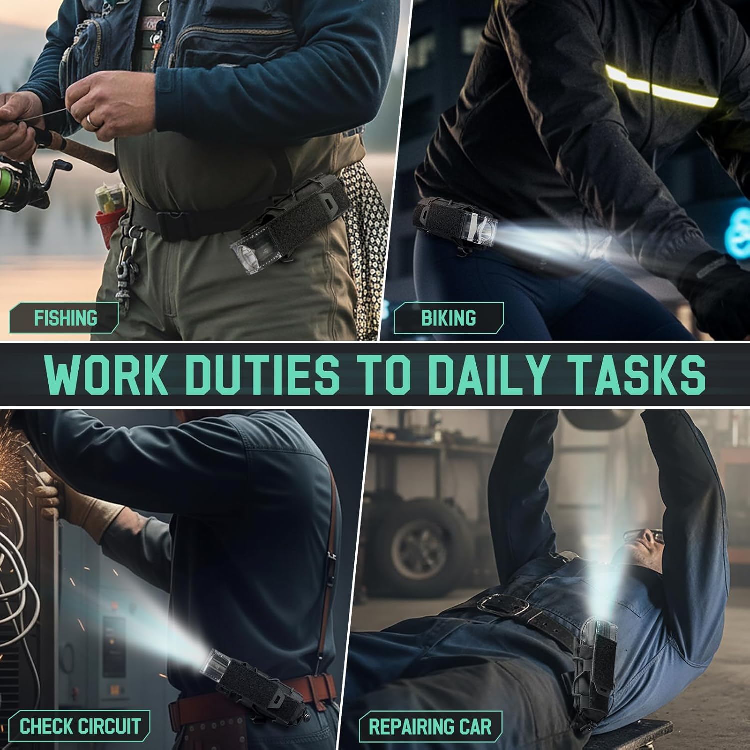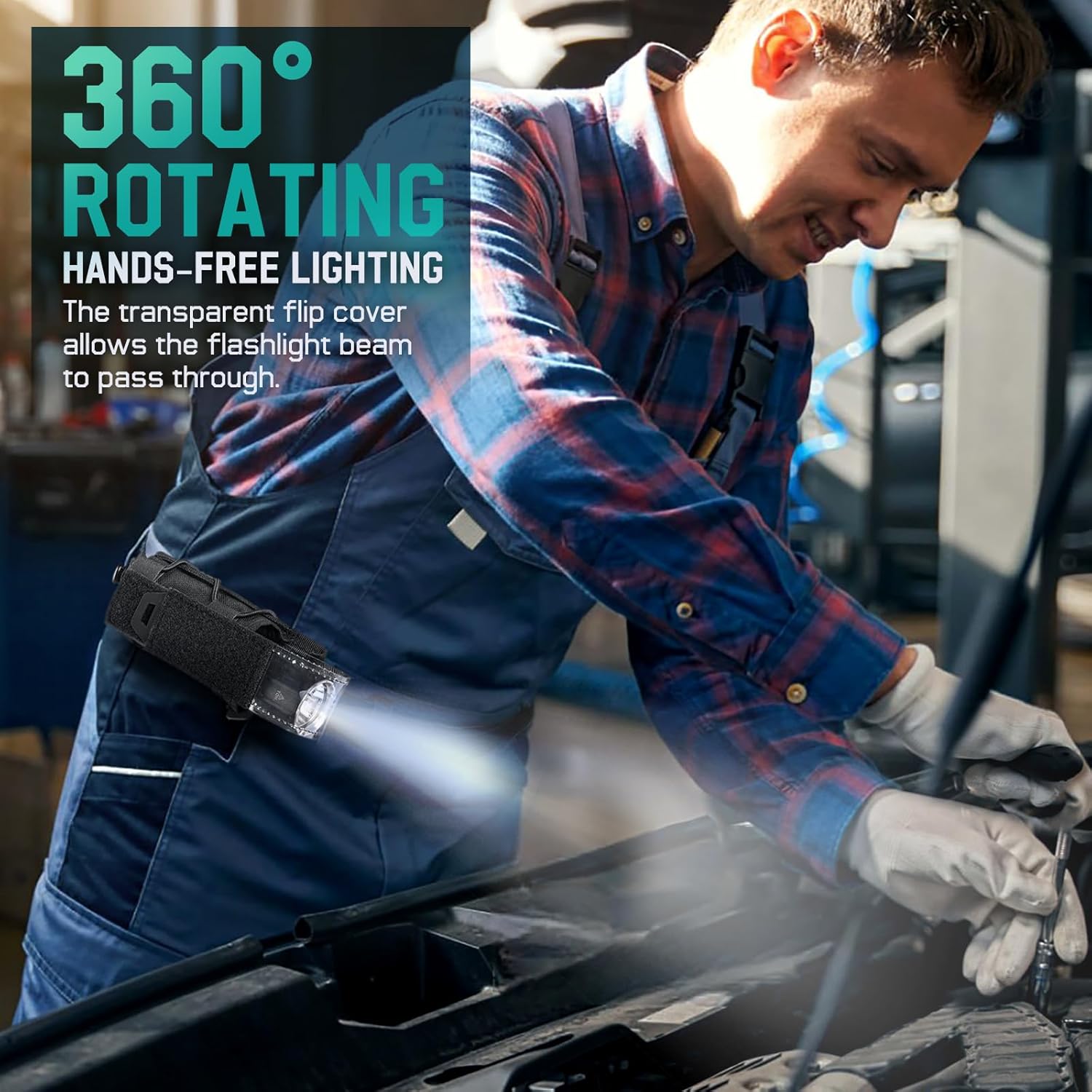 12 Locking Positions, Precision Lighting: Belt clip supports 360° free rotation with 12 locking positions, effortlessly directing light toward your target area, achieving precise hands-free lighting system from the waist, this flashlight belt holster keeps you always ready, whether on the go or within a work setting