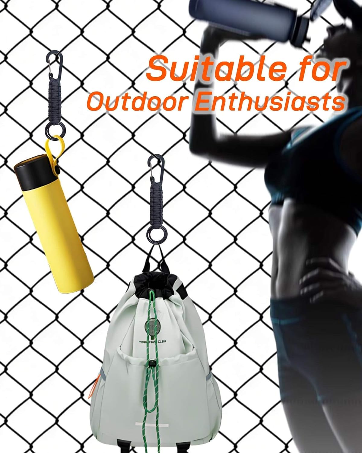 Clip your waterbottle or flashlight to the rope keychain for hands-free mobility ontrails.