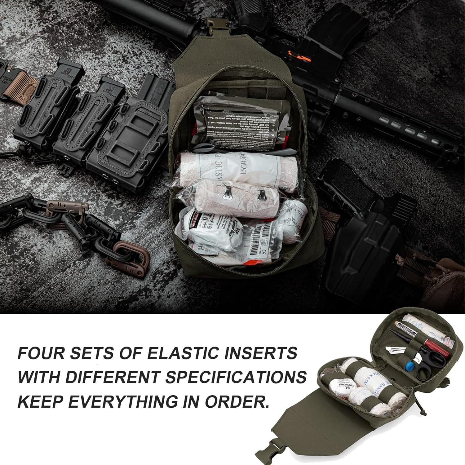 ALL IN ORDER:The detachable tactical pack with elastic webbing on the interior in order to organize the trauma supplies in a consistent fashion. an interior slot pocket for smaller items. It will fit everything in the issue IFAK and more.