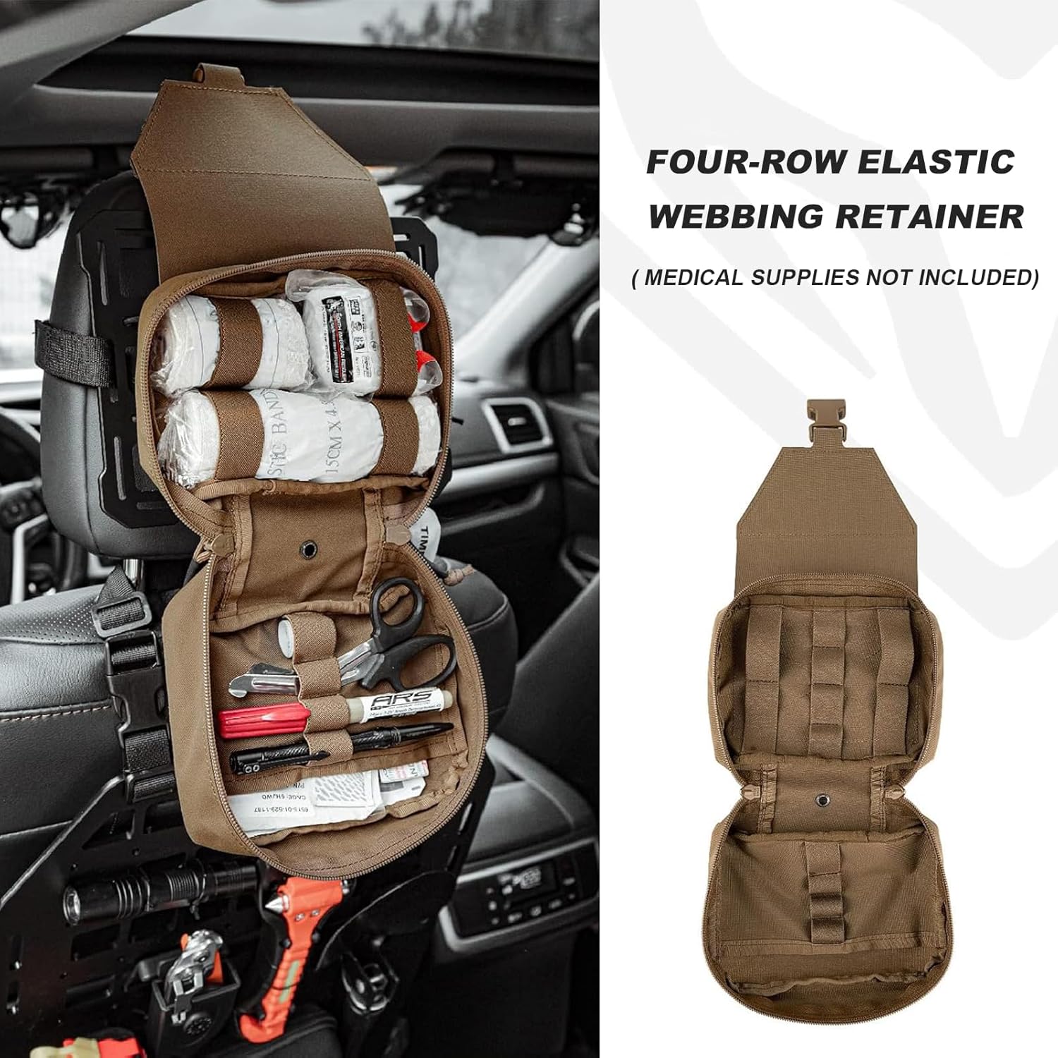 ALL IN ORDER:The detachable tactical pack with elastic webbing on the interior in order to organize the trauma supplies in a consistent fashion. an interior slot pocket for smaller items. It will fit everything in the issue IFAK and more.