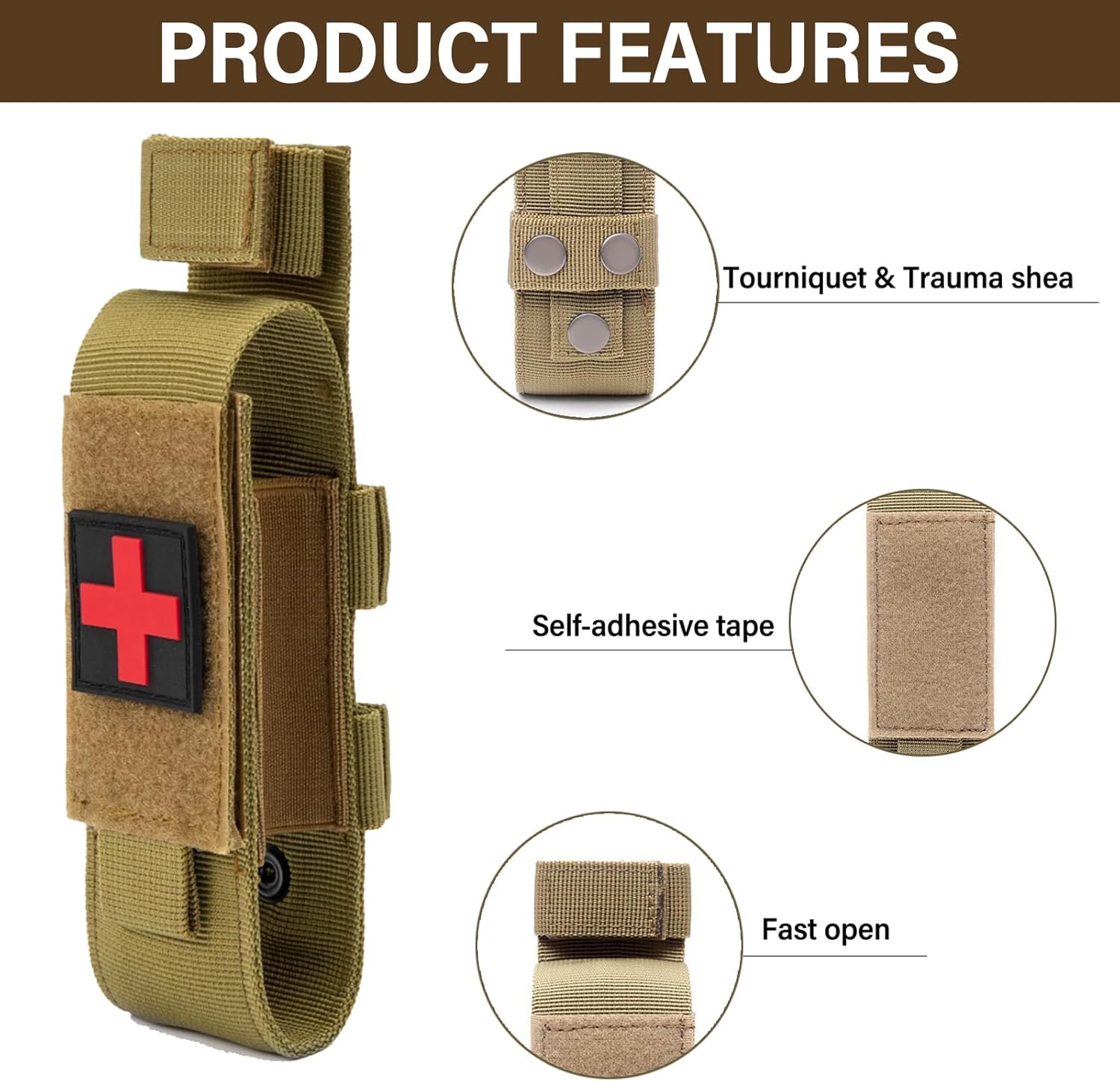 Quick Access and Easy Removal: The front Velcro quick access to the tourniquet, facilitating rapid deployment in emergency situations. The Molle system on the back is well-designed to prevent dislodging during strenuous movement, ensuring the tourniquet remains securely in place until needed
