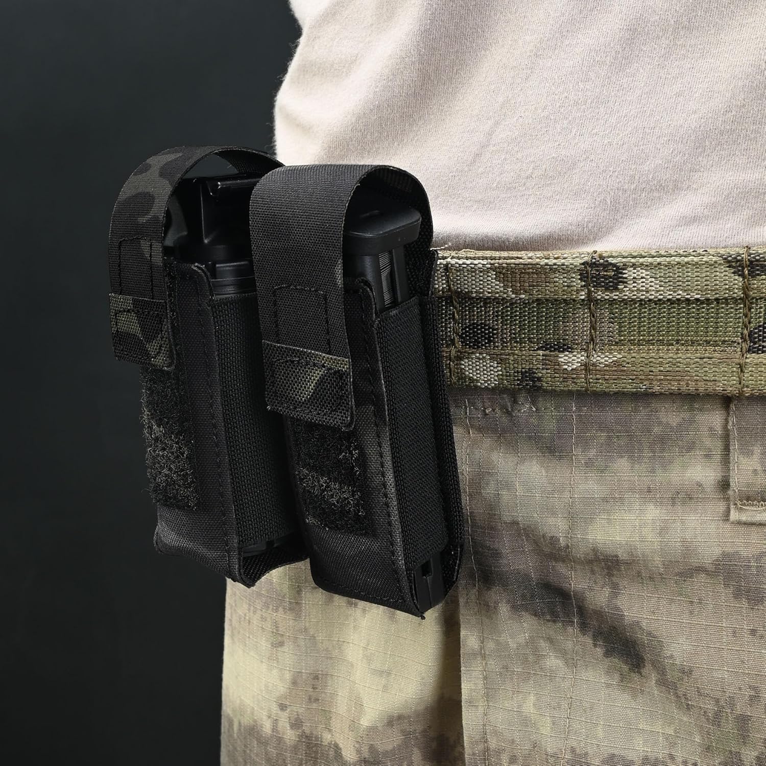 Material of pepper spray holder: Made of laminated 500D nylon fabric, duty belt pouch is lightweight, durability and wear resistance. Suitable as EDC pouch or utility pouch.
