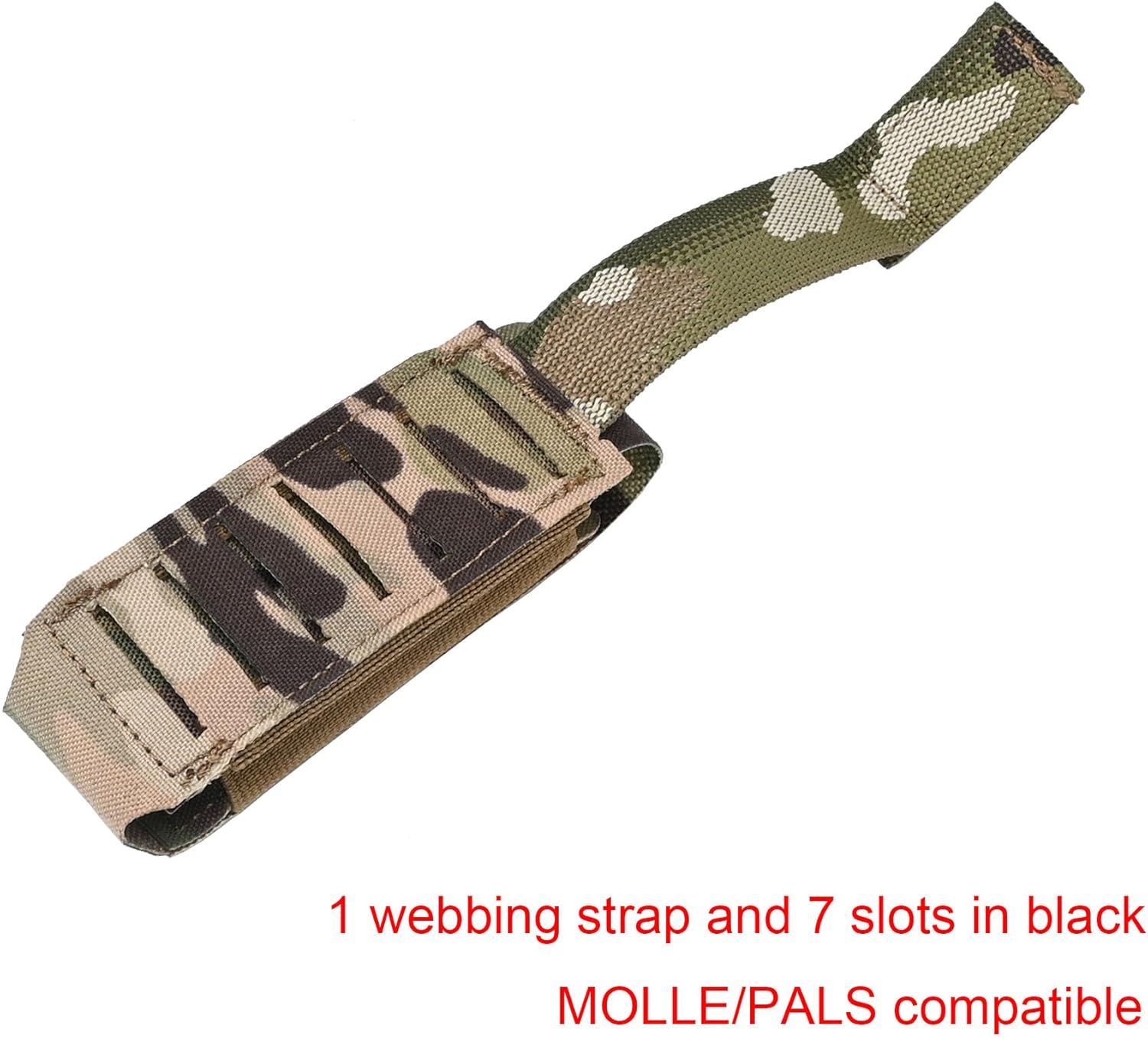 MOLLE pouch has 1 webbing and 7 laser-cut slots in back.You can attach pepper sprayers to combat belts, tactical vests, and tactical backpacks.