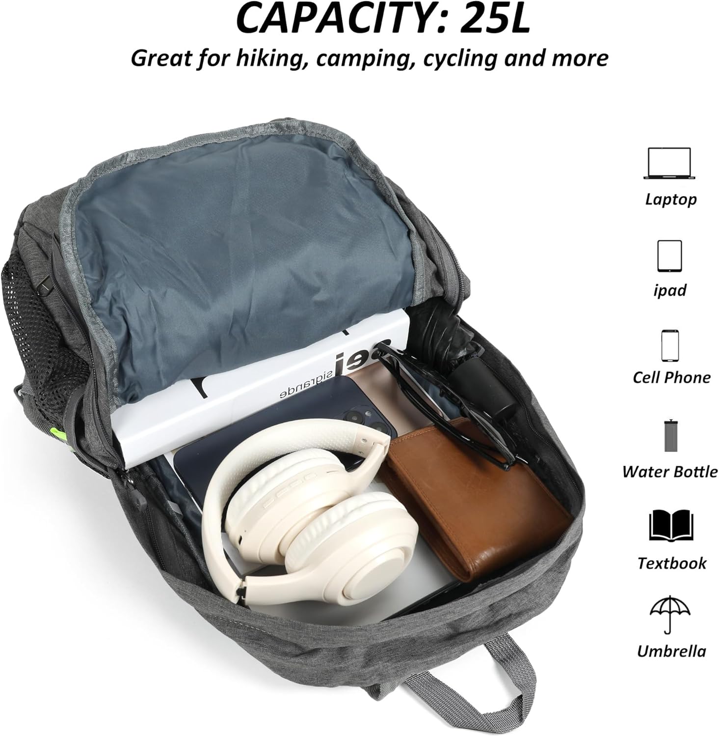 Ultra-Packable : This 25L backpack (11.8 x 6.3 x 16.9 inch) cleverly folds into its own attached zippered pouch (8.27 x 7.28 x 1.97 inch), taking up minimal space in your luggage or car. It’s the perfect full-sized daypack to have on hand for spontaneous adventures or souvenir shopping.