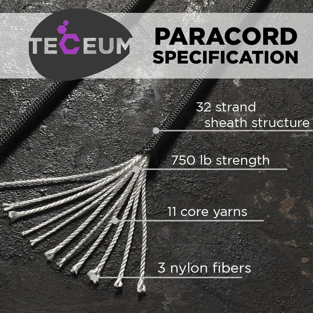 750 Paracord has an incredibly strong construction with a braided sheath structure made of 32 interwoven strands and an all-nylon core of 11 yarns, each made of 3 nylon fibers twisted together.