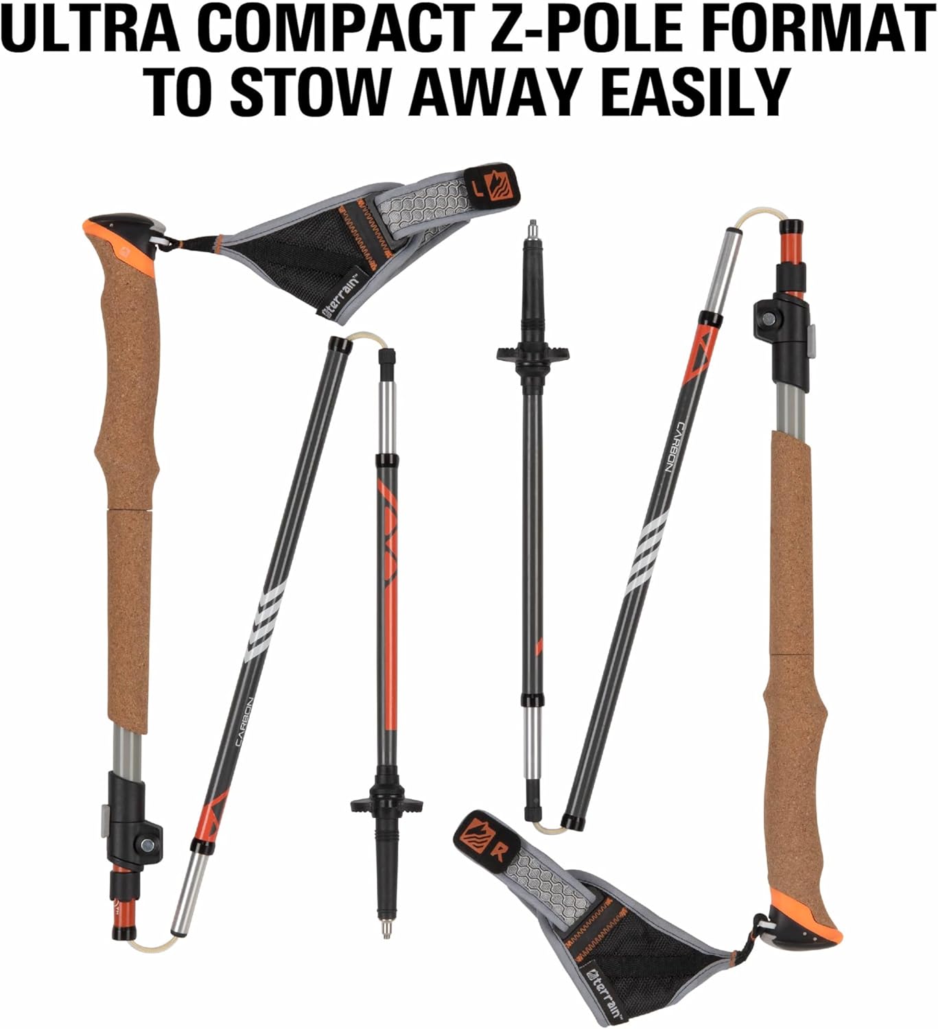 READY FOR ADVENTURE: Light carbon construction, comfortable & removeable air mesh wrist straps, & cork upper grip streamlines these trekking poles for easy packing while keeping them strong enough to handle any terrain.