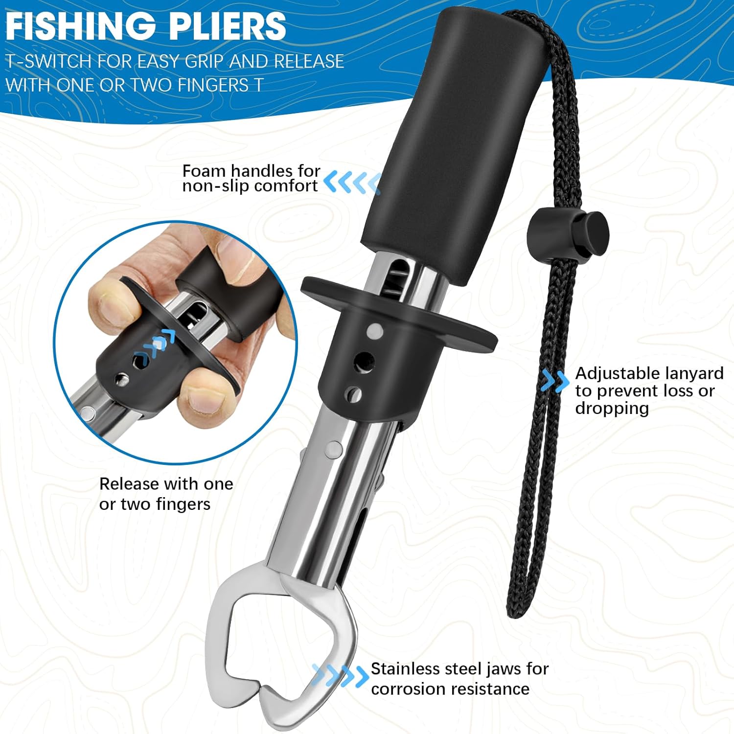 Practical Fish Pliers: The fishing pliers are equipped with a protective cover and a fishing tool lanyard, which can be easily hung together with the fish hook pliers to prevent the pliers from slipping; the pliers are widely used, they can be used to remove fish hooks, cut fishing lines, steel wires, and tie fishing lines; equipped with a high rebound spring, which is labor-saving to operate