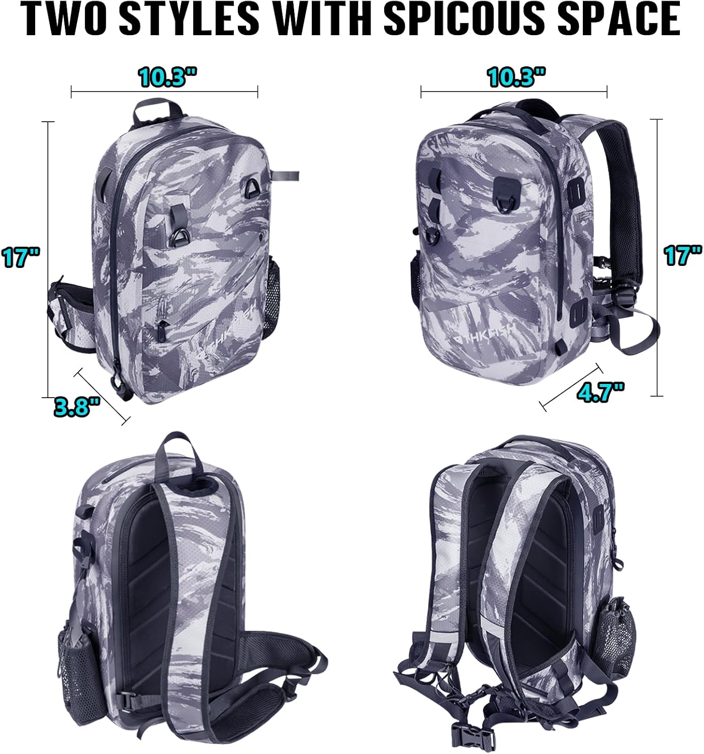 Waterproof & Durable Fishing Backpack: Use 900D oxford fabric with double-sided waterproof TPU coating, 100% rated waterproof , lightweight and comfortable, high-density materials are more scratch-resistant and wear-resistant than ordinary textile fabrics. The waterproof fishing tackle bag main compartment features a fully waterproof, TRU submersible airtight zipper, which prevents water intrusion effectively, ensuring long-term use in any harsh fishing environment.