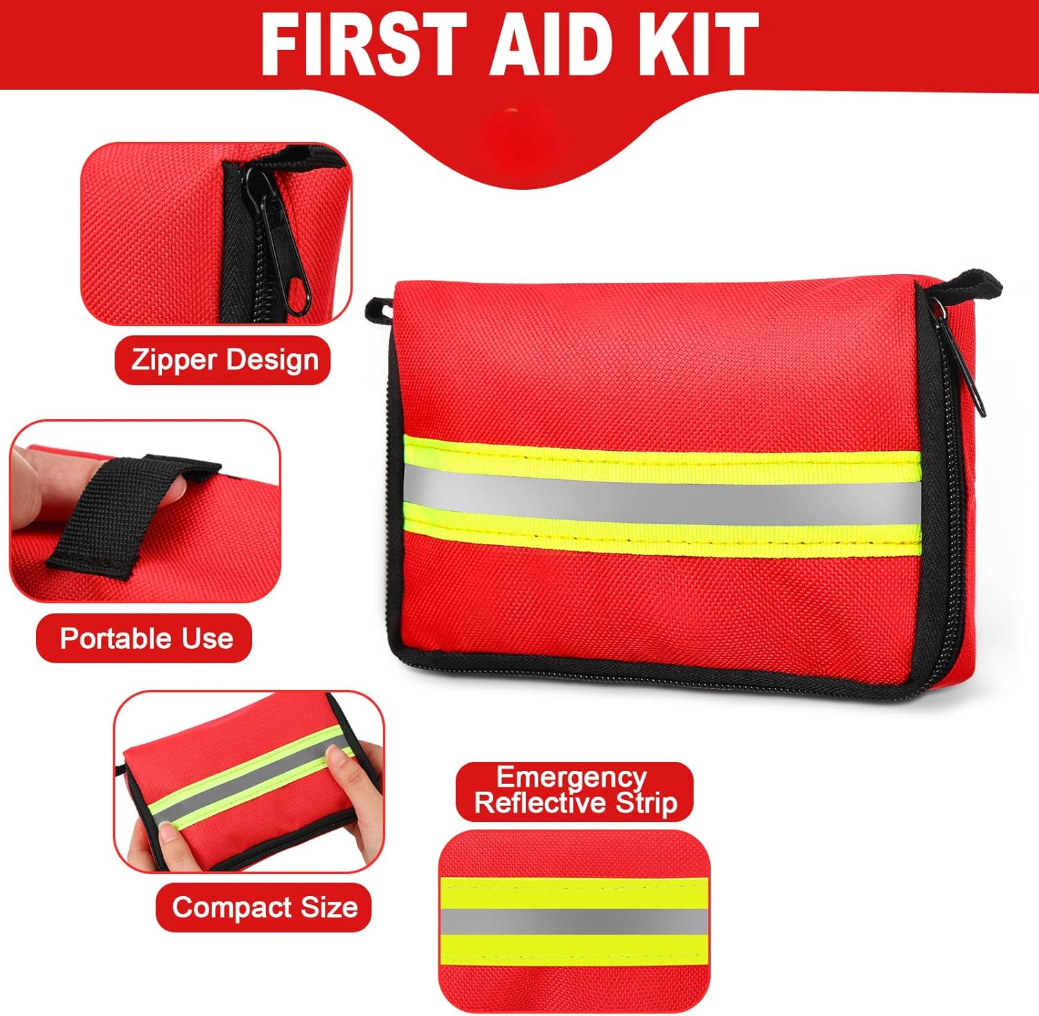 Noticeable Design: designed in a bright red color with reflective strips that is easily recognizable, travel first aid kit extend visibility even in low light conditions; This feature not only makes it easy to locate in any circumstance, but it also helps you stand out during emergencies