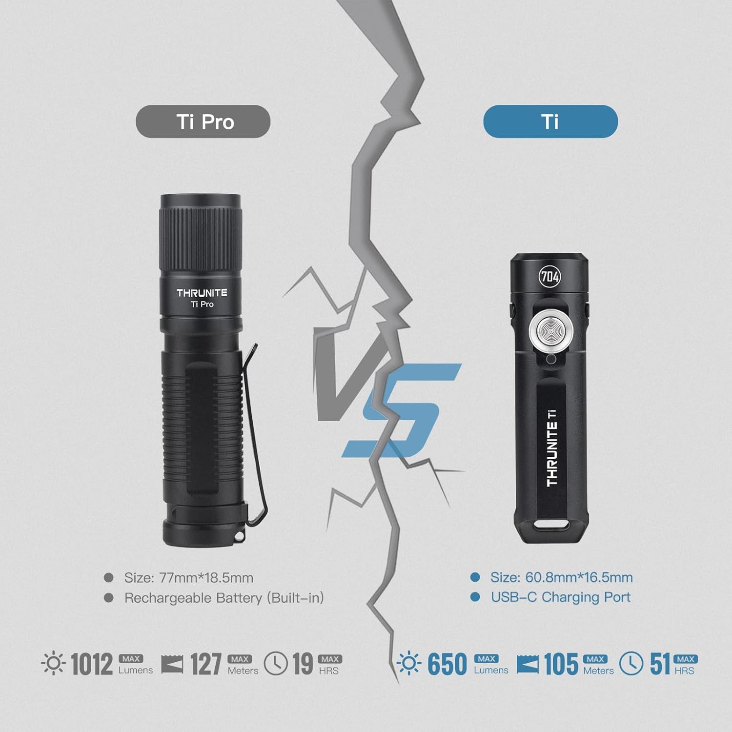 Ultra-Bright Keychain Light – Equipped with a high-performance LED, the Ti delivers up to 650 lumens and a 105-meter max beam distance—powerful illumination in a compact size, ideal for EDC, camping, and emergencies