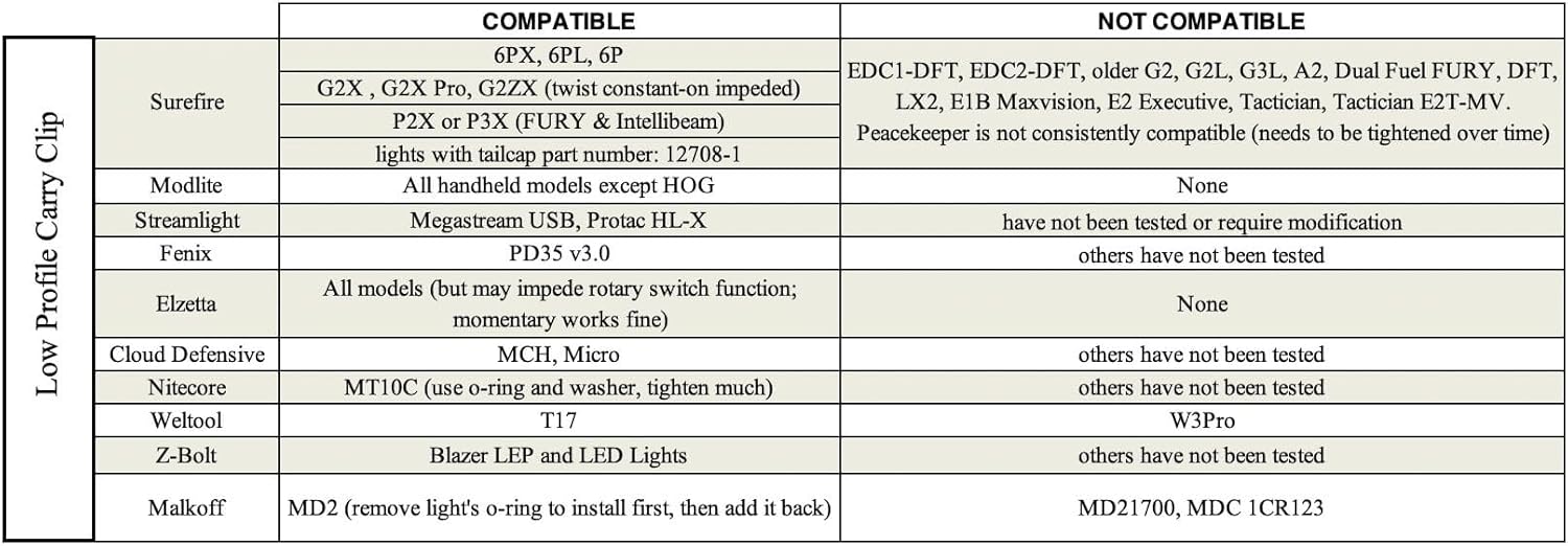 Compatible Lights for the Low Profile Carry Clip (LPC Clip)