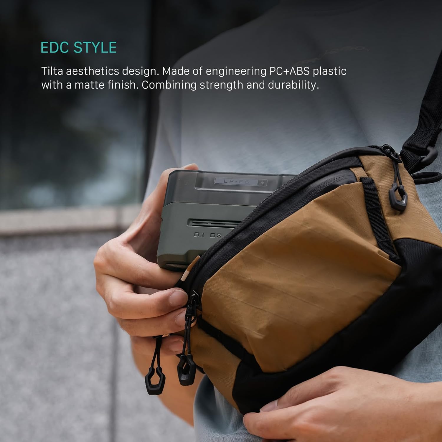This compact charging station is designed compatible with Canon and third-party LP-E6 batteries, offering four slots for easy charging and convenient storage. Equipped with 45W PD Fast Charging, it delivers an impressive 68% faster charging speed than a standard single charger, ensuring your batteries are ready for action in just 3 hours. Real-time charging status indicators keep you informed on the status of each battery and the lightweight design means the unit weighs only 176 grams, ensuring it is easy to travel with. With the ability to fully charge four LP-E6 batteries, users will be ready for up to 13 hours of video recording or enough power to handle 2,400 photos, perfect for long shooting sessions. The Tilta Portable Charging Station features an EDC-style design with Tilta’s signature aesthetic, making it a stylish and functional addition to your gear. Whether you’re on a professional shoot or capturing personal moments, this versatile charger provides the power you need in a convenient, portable package. Please note: this Charging Station does not feature an internal battery and can only be used to charge batteries when connected to an external power source.