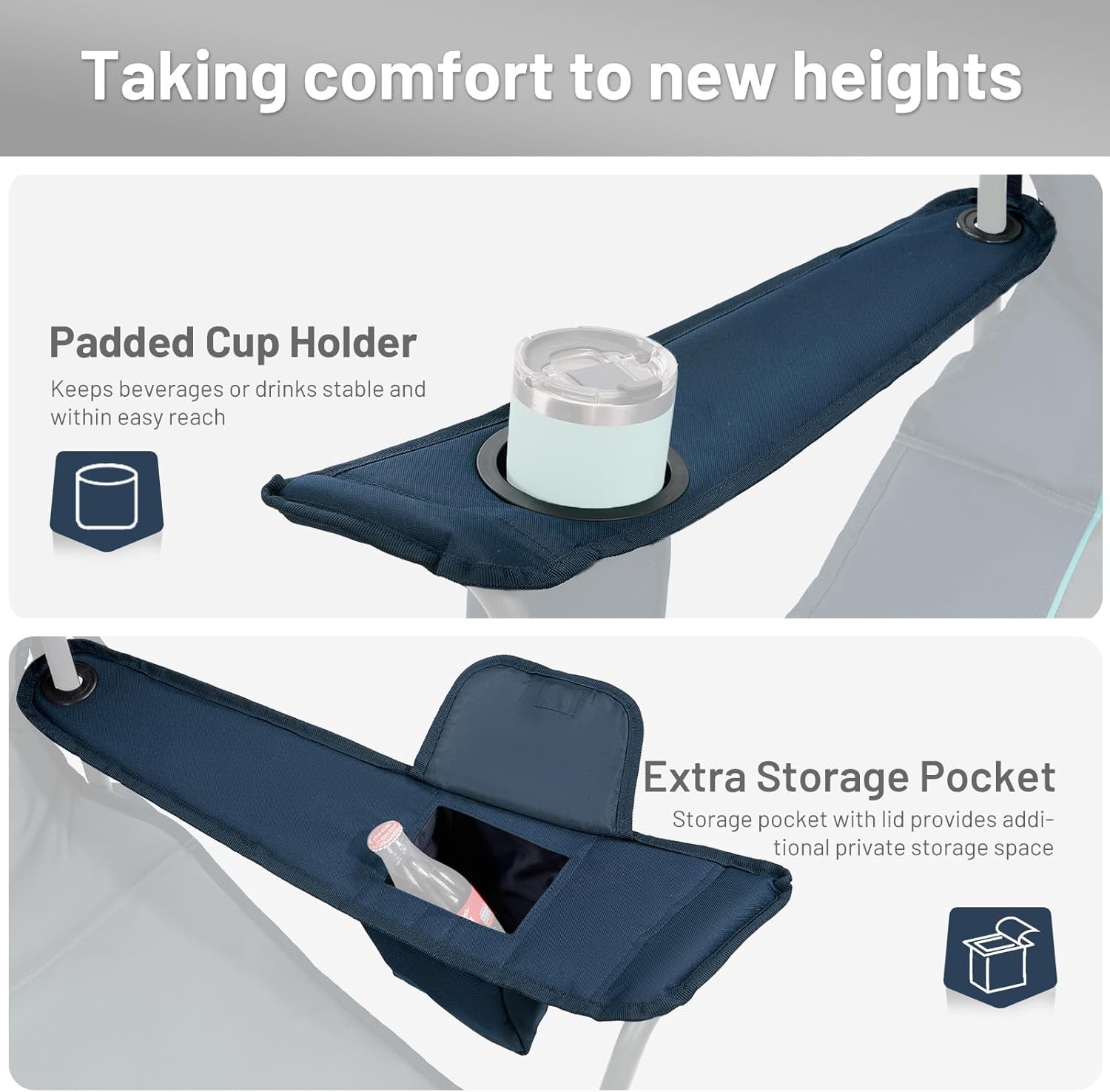 CONVENIENT STORAGE: The outdoor folding chair features a cup holder and storage pocket for essentials like sunscreen and phones; each chair comes with a carry bag for easy transport