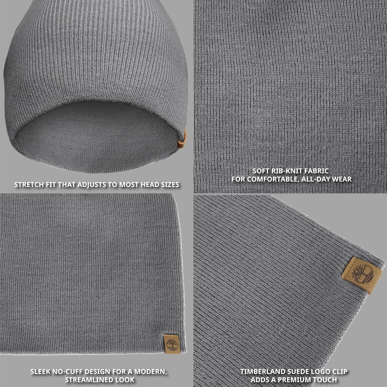 🥾 Timberland Men’s Ribbed Pull-On No Cuff Beanie – Soft Rib Knit Winter Hat, Stretch Fit, Warm Classic Look, Suede Logo Clip — Review, Key Features & Current Price