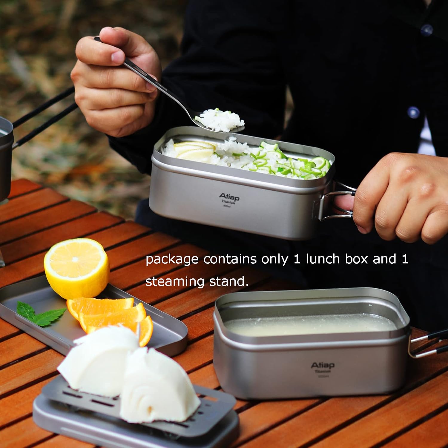 Come with a titanium steaming rack. Add some water to steam food, convenient for outdoor cooking. Steam and boil dual purpose, compact but versatile.