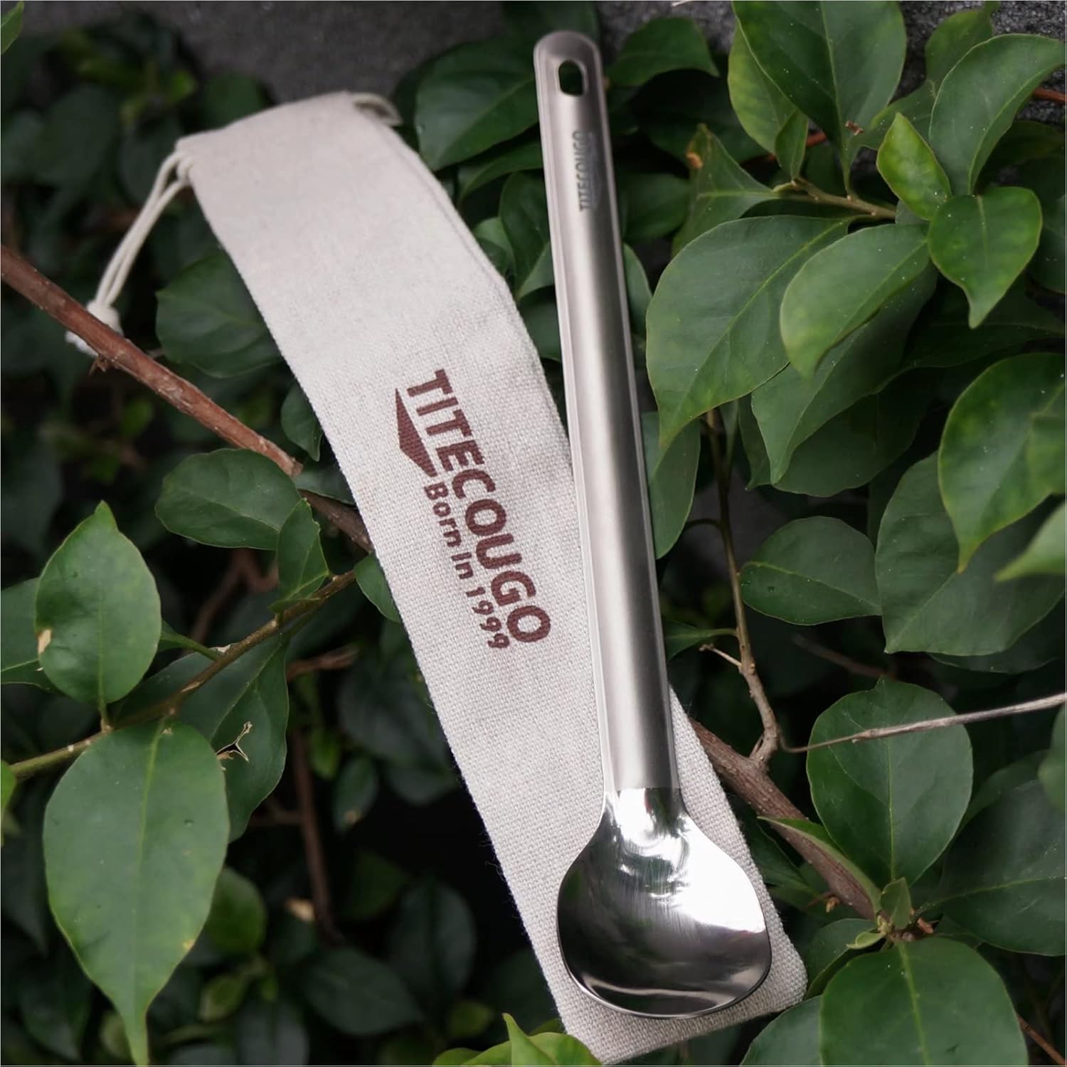 Titanium Long Handle Spoon: Designed for dehydrated meals, camping, hiking, backpacking, outdoors, lunch, and dinner with polished bowl. Ultra lightweight and strong for your meals on the go, the woods, hiking, camping, and outdoor events. Excellent for the office or keep in car in case of impromptu meals