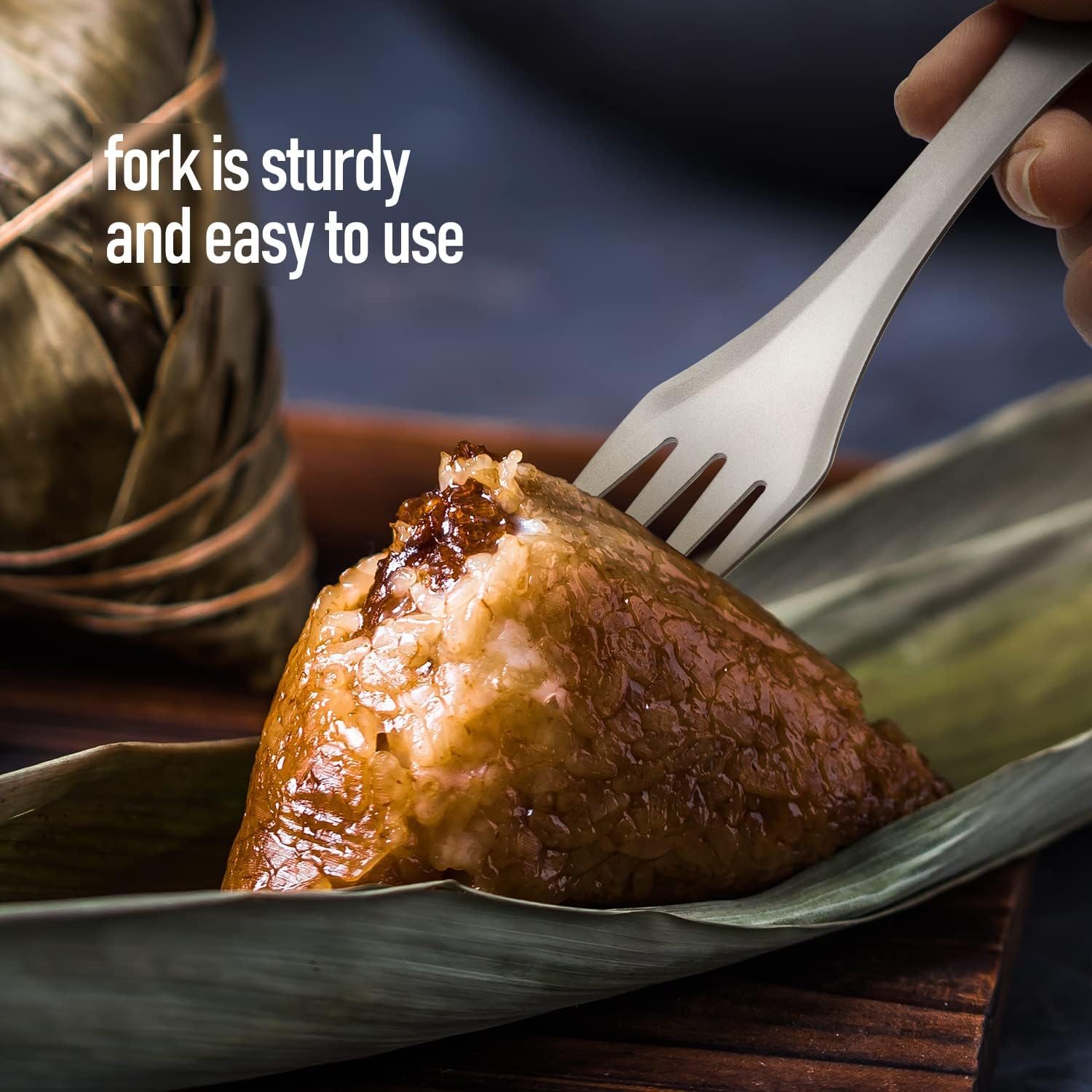 The whole body of TiTo Titanium spork is made of pure titanium. Compared with similar products made of other materials, titanium has better strength. It has the characteristics of corrosion resistance, acid and alkali resistance, rust resistance, easy cleaning, health and safety.