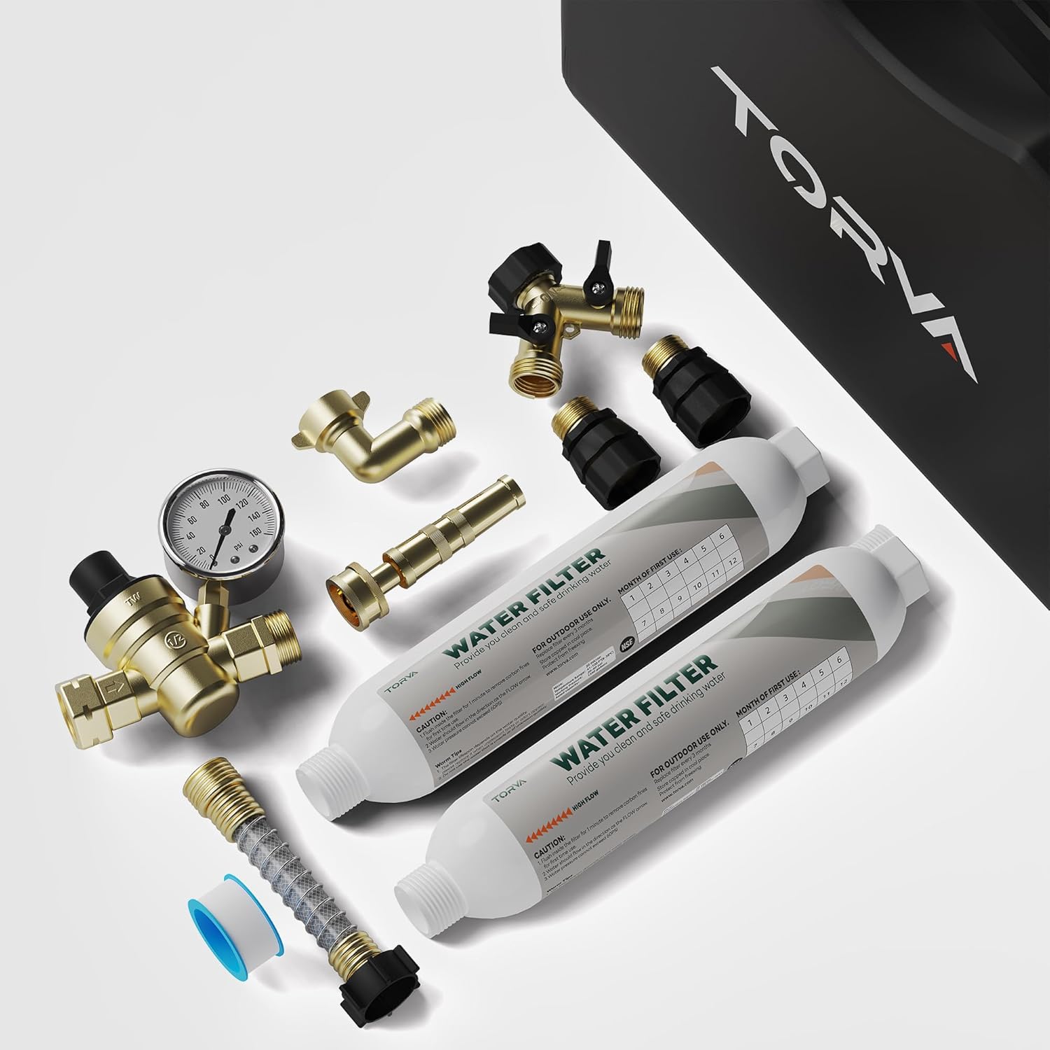 All-in-One Fresh Water Solution – Our all-in-one Fresh Water Kit includes an RV water pressure regulator, water filter, hose splitter, quick connect hose adapter, flexible connector, brass hose elbow, and hose gaskets. It covers all necessary equipment for water purification, saving you time and effort from buying items separately, allowing you to focus on more meaningful activities