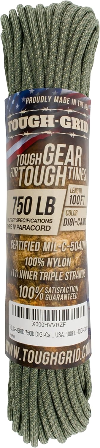 Premium Tactical Strength: Experience the unbeatable reliability of TOUGH-GRID Type IV Parachute Cord with 750 lbs (11 Triple Strands) of certified strength. Perfect for your survival kit, tactical gear, and outdoor adventures.