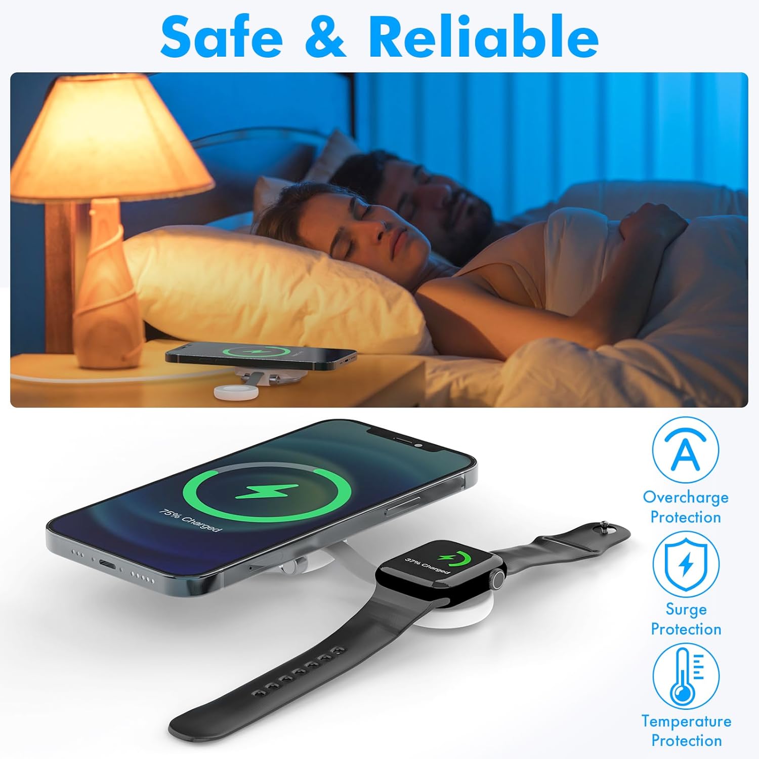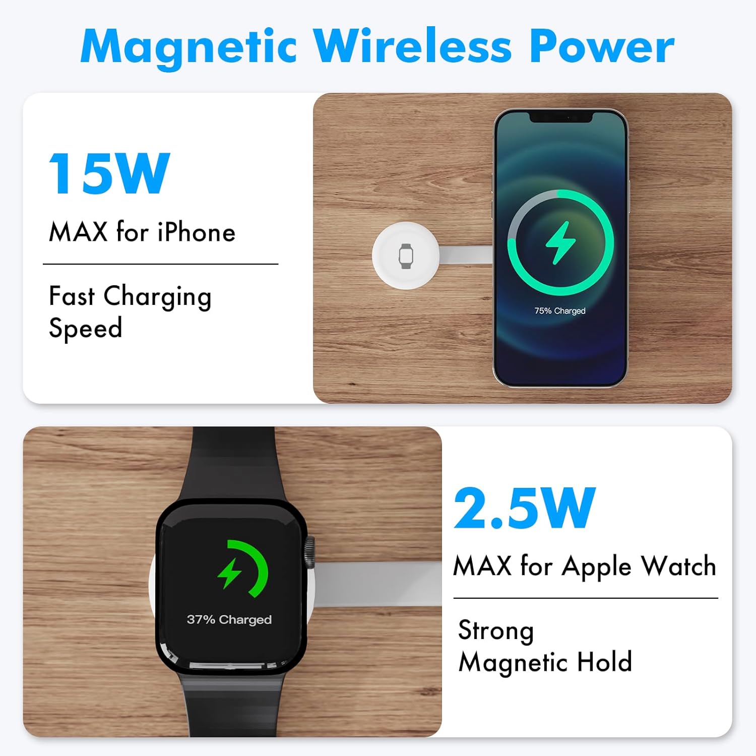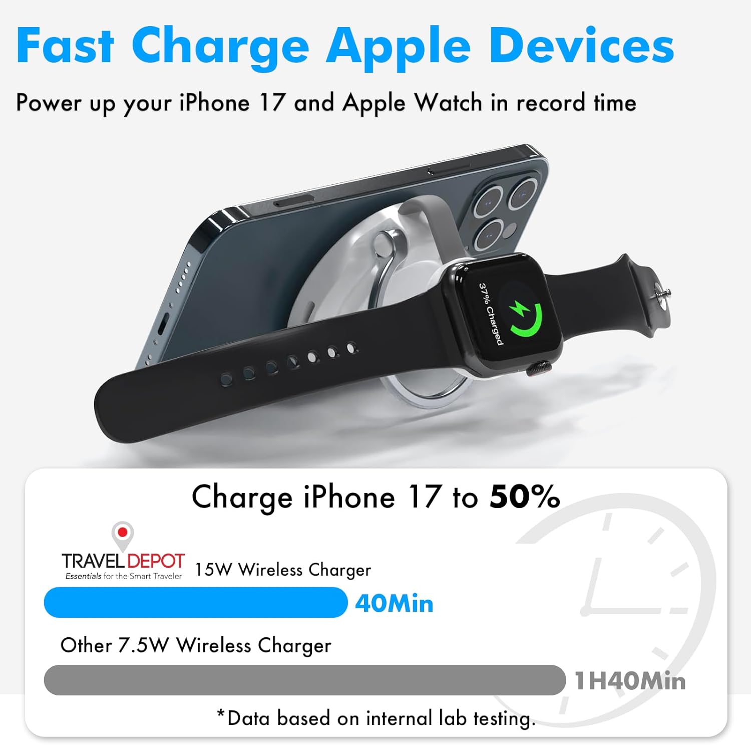 High-Speed Charging: QI 2 Certified for up to 15W fast charging—charge your iPhone or AirPods along with your Apple Watch simultaneously and efficiently