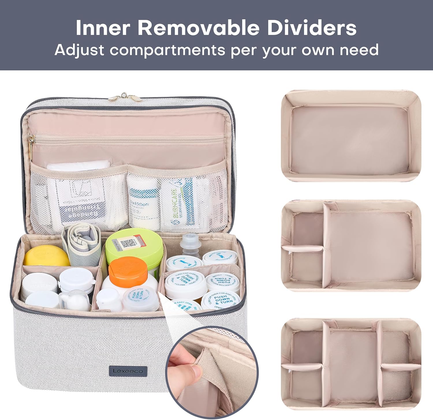 Easily Customized:Featuring two detachable dividers, this medicine organizer bag adapts to your personal routine—whether it’s daily pills, supplements, or emergency items. Dual mesh zippered pockets on top and bottom keep small essentials like cotton swabs, pill packets, or a thermometer neatly stowed and quickly accessible when urgency strikes.
