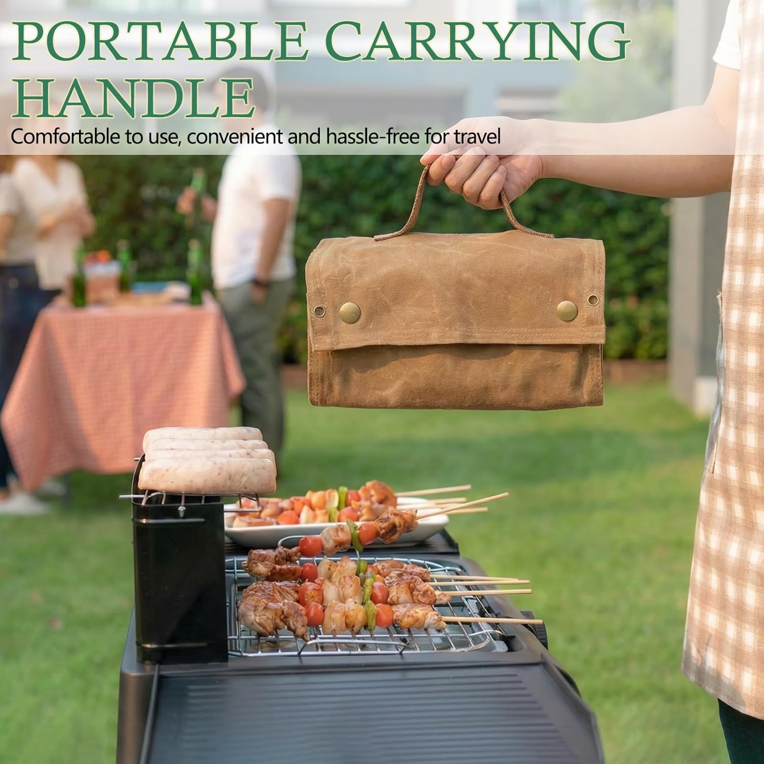 Foldable & Portable + Multi-Scene Hanging Design: The camping seasoning storage bag can be folded into a compact size and comes with a built-in portable handle for easy hand carrying. The travel spice storage bag features an integrated hanging buckle for secure attachment to poles, while four hanging holes on the back allow it to be tied to tree trunks with a rope. This design enables convenient access and space-saving storage during camping.