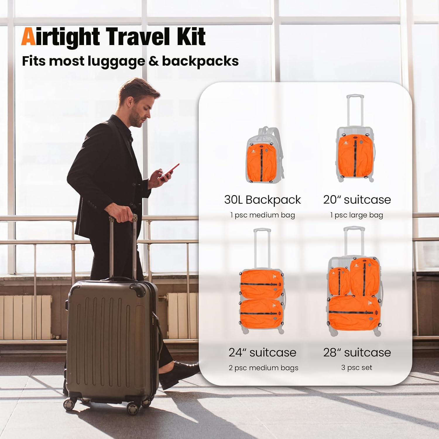 【Durable, Tear-Resistant & Reusable】Crafted from premium TPU and nylon with high-frequency heat-sealing technology, our luggage vacuum bags deliver exceptional airtight performance, tear resistance, and long-lasting durability. Designed for repeated use without air leakage.