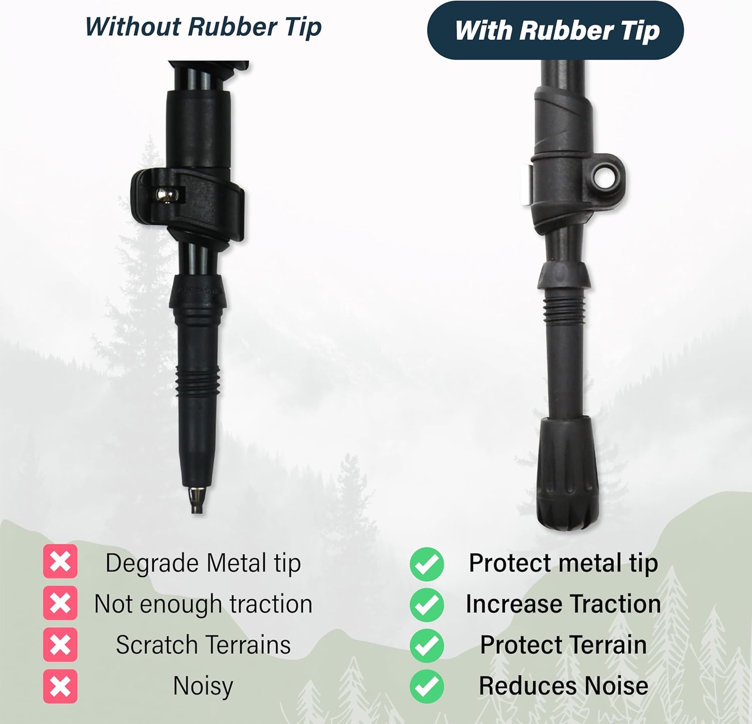 ENHANCED GRIP – whether on hard surfaces or rocky terrain, these rubber tips help increase traction and prevent slipping, thereby improving stability.