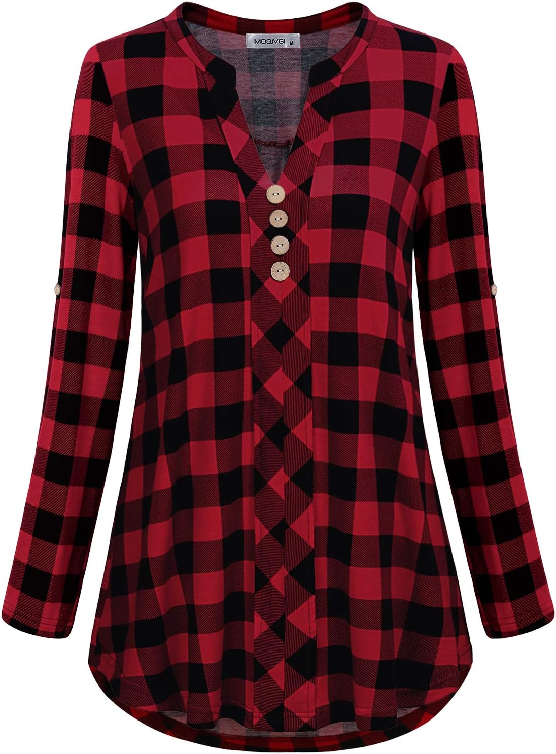 MOQIVGI Womens Trendy Dressy Casual Roll Tab Sleeve V Neck Shirts.